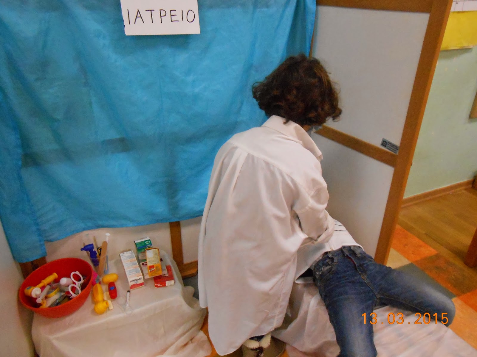 Μαθαίνουμε επίσης πως να φροντίζουμε το σώμα μας και να είμαστε πάντα καθαροί αλλά και τον κανόνα του εσώρουχου διαβάζοντας τον ΚΙΚΟ ΚΑΙ ΤΟ ΧΕΡΙ. Μιλάμε για την προφύλαξη από τους ιούς και τις αρρώστιες και δημιουργούμε τη γωνιά του ιατρείου.
