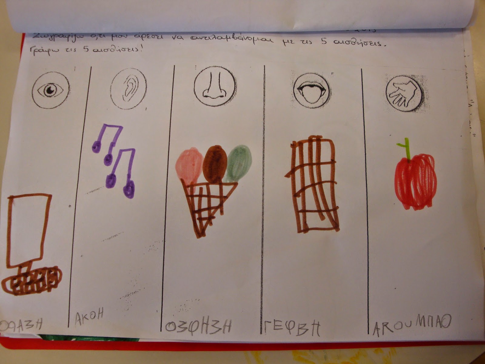 Διασκεδάζουμε με παιχνίδια για τις 5 αισθήσεις: μάντεψε ποιο αντικείμενο λείπει, από που έρχεται ο ήχος, τι είναι αυτό που μυρίζεις, αυτό που γεύεσαι και ποιο παιδάκι ακουμπάς στη “μικρή Ελένη”.