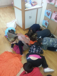 Διασκεδάσαμε παίζοντας το παιχνίδι ”ο πιγκουίνος και το αβγό του”.Για αβγό τα παιδιά χρησιμοποίησαν ένα κουβάρι.Ποιος πιγκουίνος θα φτάσει πρώτος στη φωλιά του χωρίς να του πέσει το αβγό;