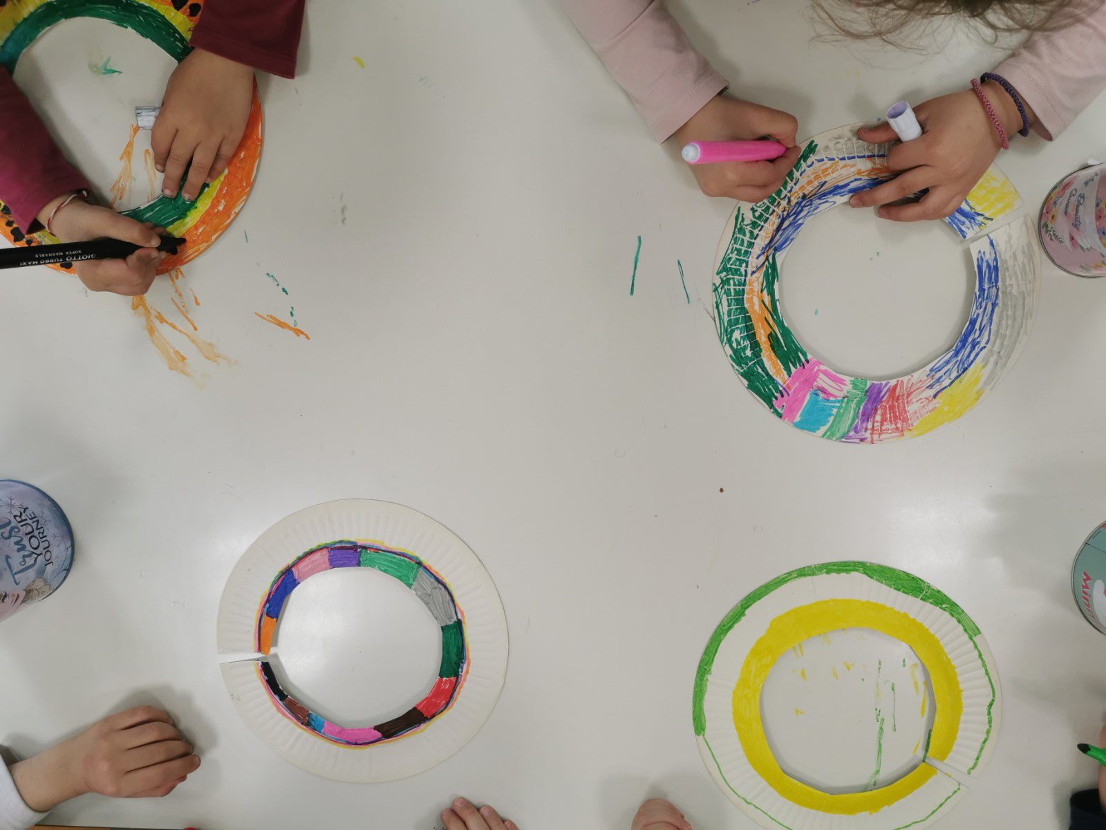 We talk about Afrika, the savanna and the Maasai people.We made necklaces art of paper plates and performed a traditional Maasai dance. We drew the savanna at sunset and put animals of the savanna on our drawings.