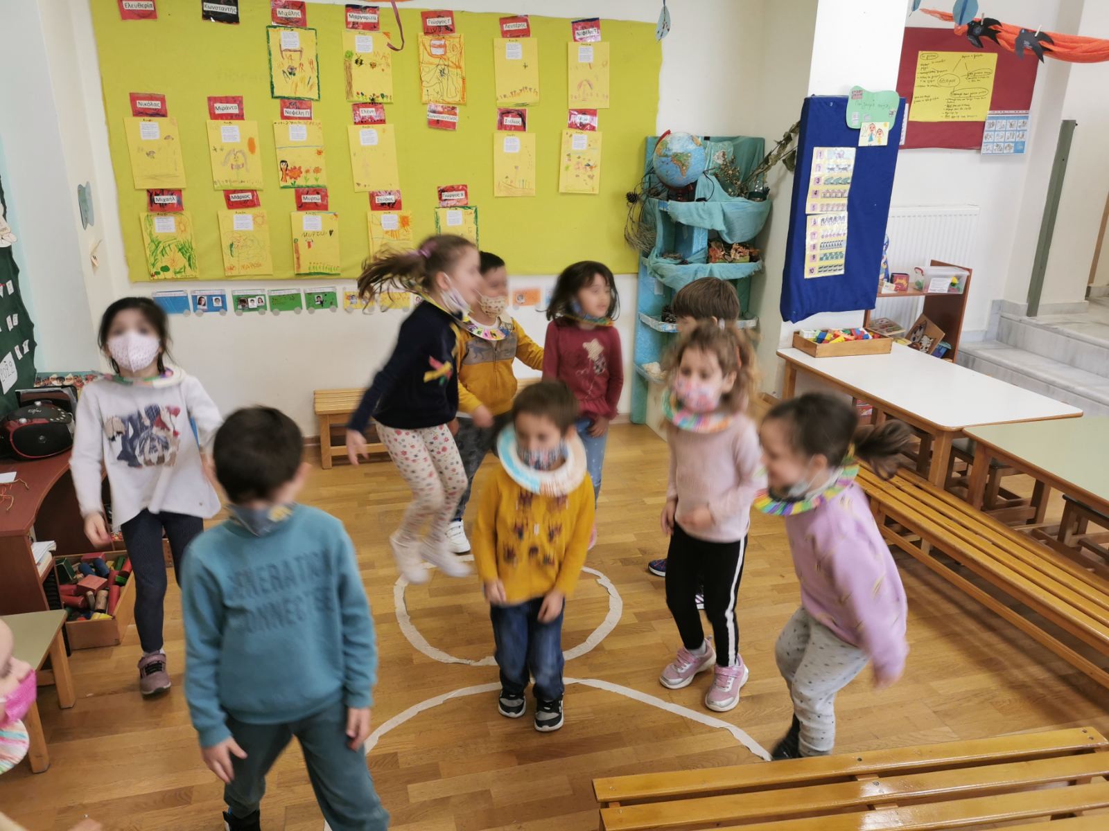 Διασκεδάσαμε παίζοντας το παιχνίδι ”ο πιγκουίνος και το αβγό του”.Για αβγό τα παιδιά χρησιμοποίησαν ένα κουβάρι.Ποιος πιγκουίνος θα φτάσει πρώτος στη φωλιά του χωρίς να του πέσει το αβγό;