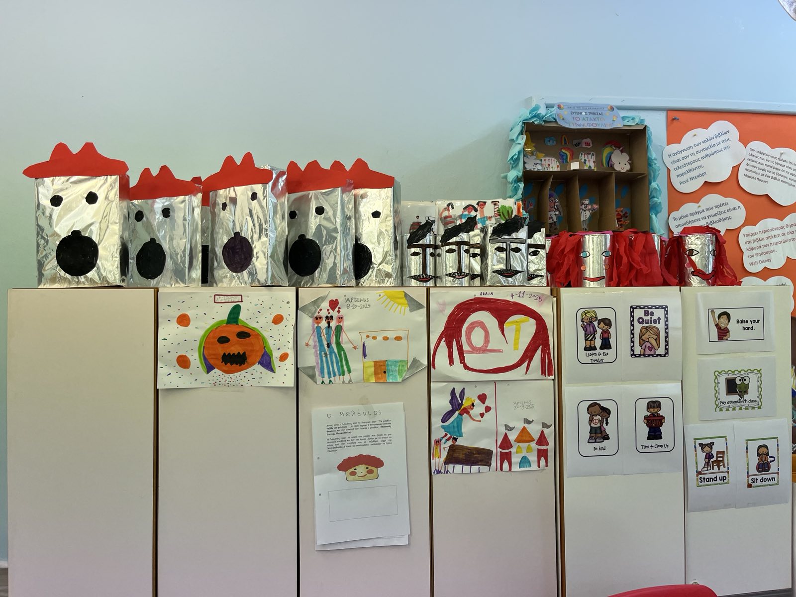 Διαβάσαμε το βιβλίο, αλλά και παρακολουθήσαμε την παράσταση κουκλοθέατρου “Τενεκεδούπολη” της Ευγενίας Φακίνου, γνωρίζοντας, έτσι, αυτό το είδος θεατρικής σύμβασης. Στο τέλος, ο καθένας μας δημιούργησε τον δικό του αγαπημένο ήρωα από την ιστορία και την δραματοποιήσαμε