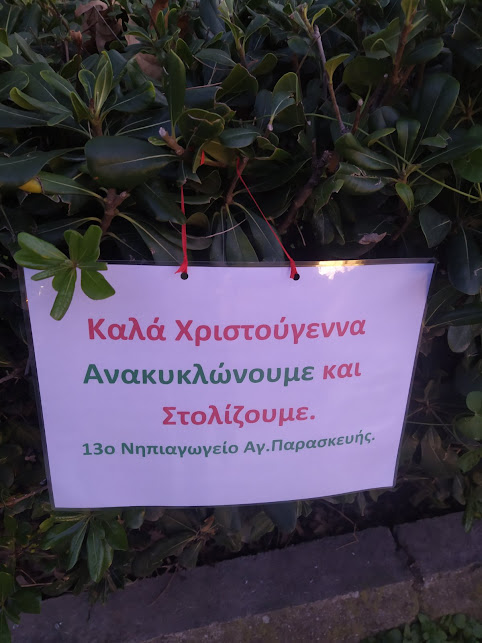 Ανακυκλώνουμε και στολίζουμε το δέντρο της γειτονικής μας πλατείας.