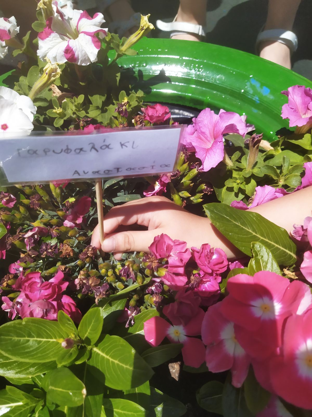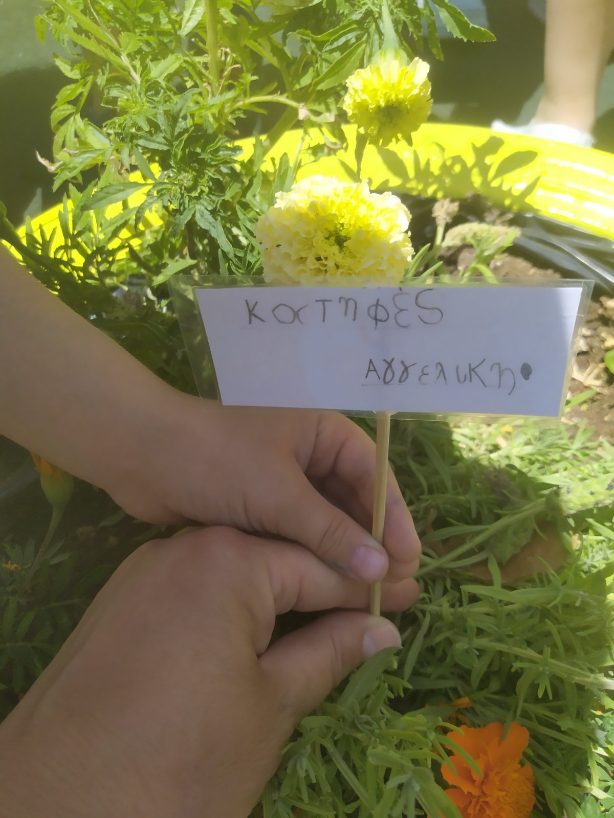 Τα παιδιά έφτιαξαν ταμπελάκια με τα ονόματα των φυτών και τα τοποθέτησαν στις γλάστρες.