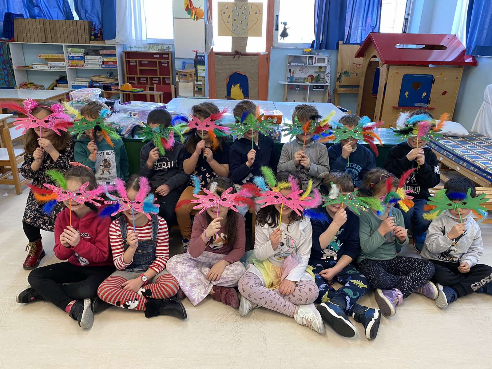 Παίξαμε το κυνήγι του χαμένου αποκριάτικου θησαυρού, λύσαμε γρίφους της αποκριάς, δραματοποιήσαμε το παραμύθι “Μια σκούπα μα τι σκούπα”,παίξαμε αποκριάτικα παιχνίδια όπως “τι θα ντυθεί ο μασκαράς; ” , χορέψαμε και τραγουδήσαμε παραδοσιακά και σύγχρονα τραγούδια!