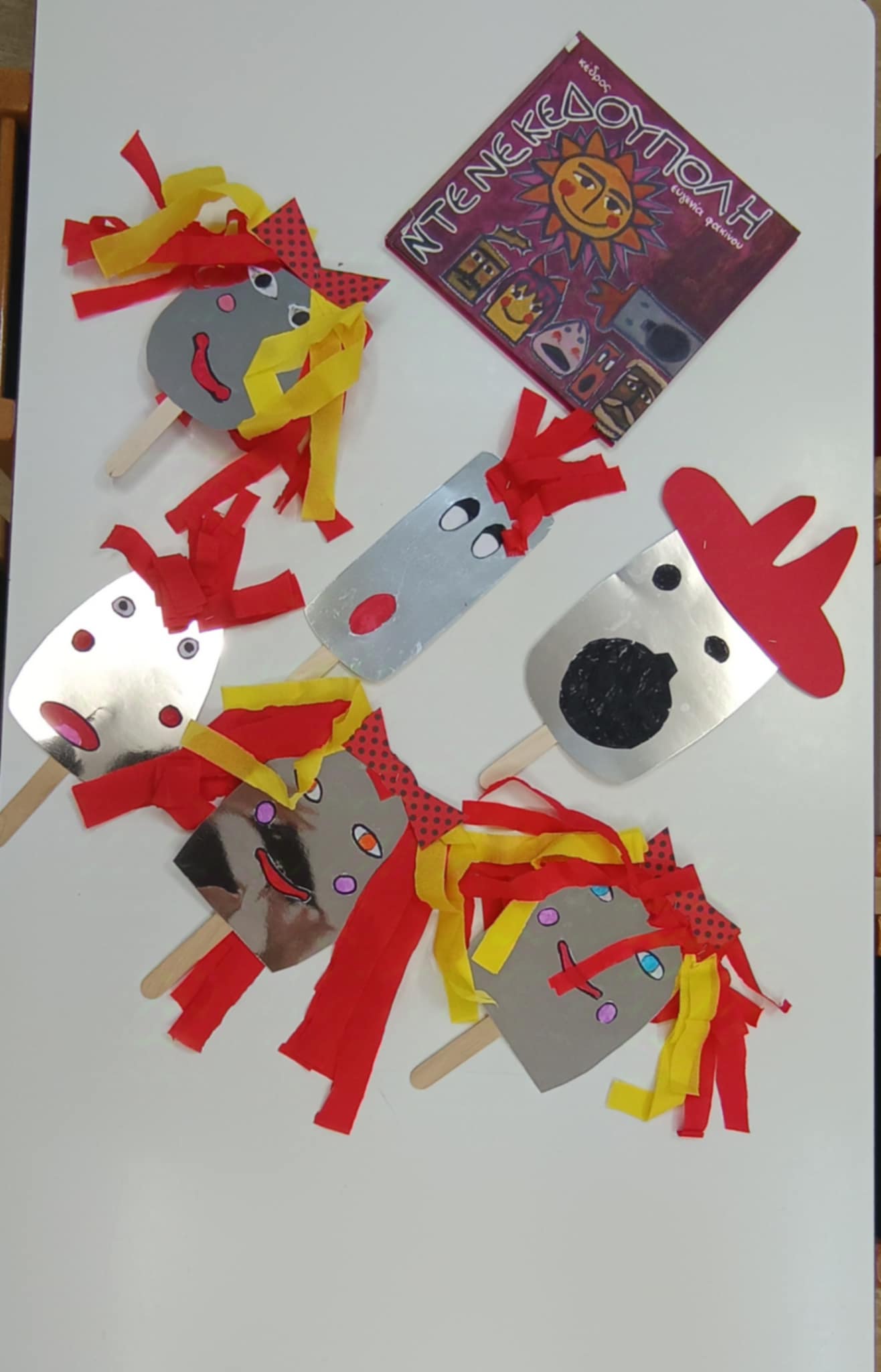 Φυσικά, δεν παραλείψαμε να διαβάσουμε το βιβλίο, αλλά και να παρακολουθήσουμε την παράσταση κουκλοθέατρου “Τενεκεδούπολη” της Ευγενίας Φακίνου, γνωρίζοντας, έτσι, αυτό το είδος θεατρικής σύμβασης. Στο τέλος, ο καθένας μας δημιούργησε τον δικό του αγαπημένο ήρωα από την ιστορία.