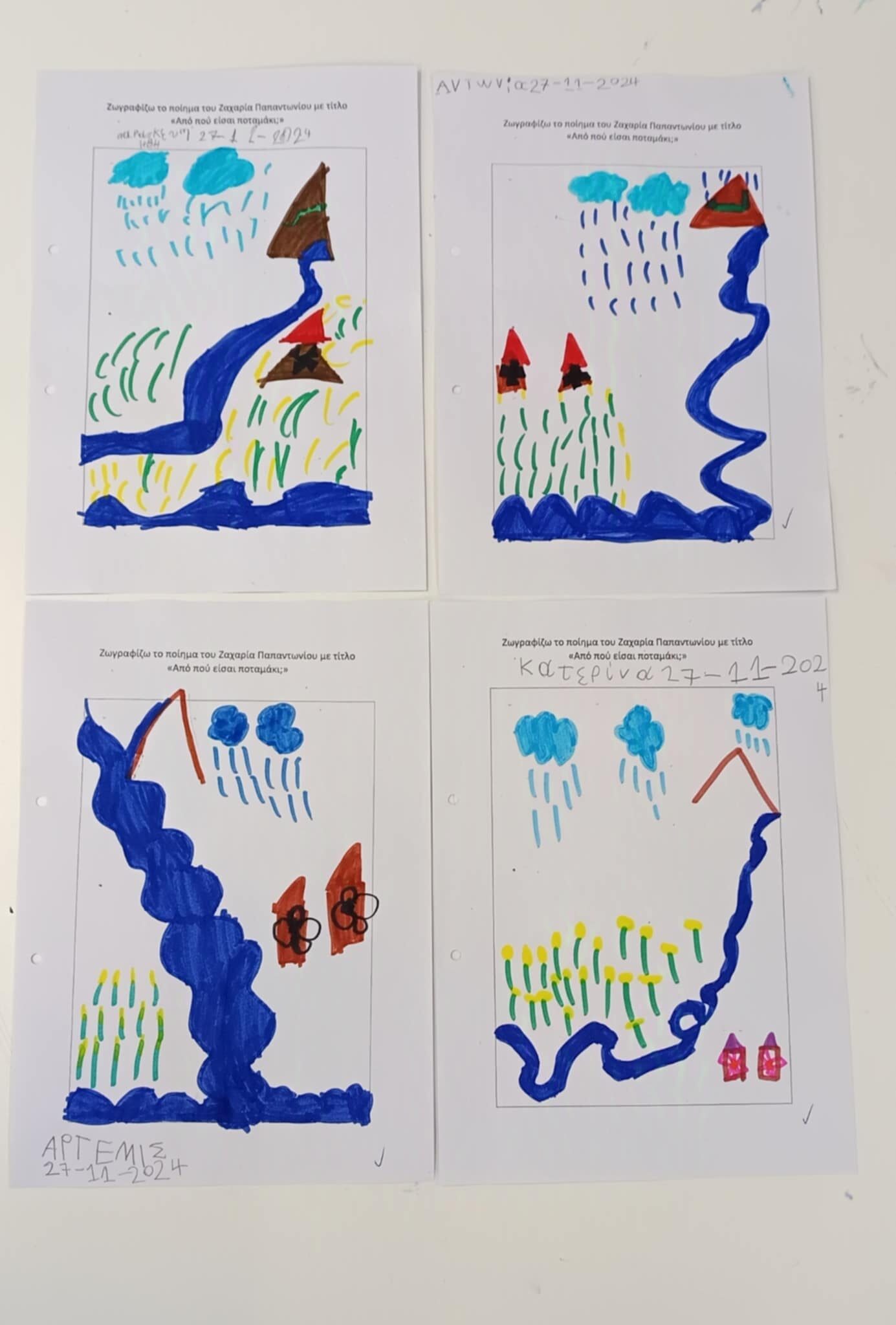 Μάθαμε το ποίημα του Ζαχαρία Παπαντωνίου με τίτλο “Από πού είσαι ποταμάκι;” και το ζωγραφίσαμε.