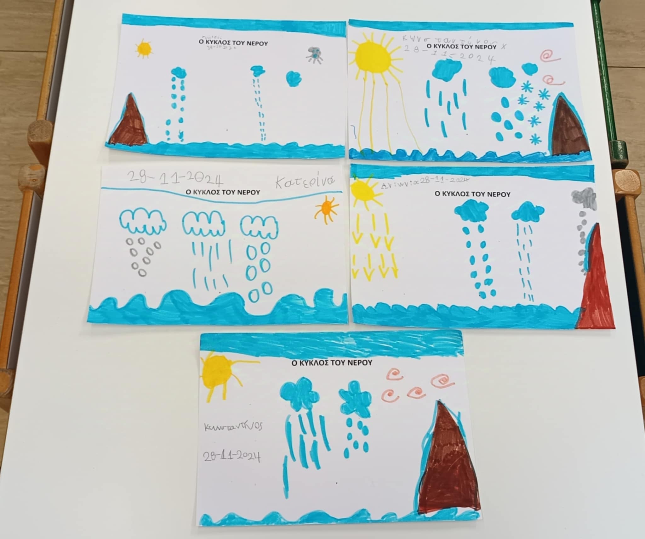 Επίσης, ζωγραφίσαμε ελεύθερα τον κύκλο του νερού στο χαρτί μας, ως αποτύπωση όσων μάθαμε για το θέμα.