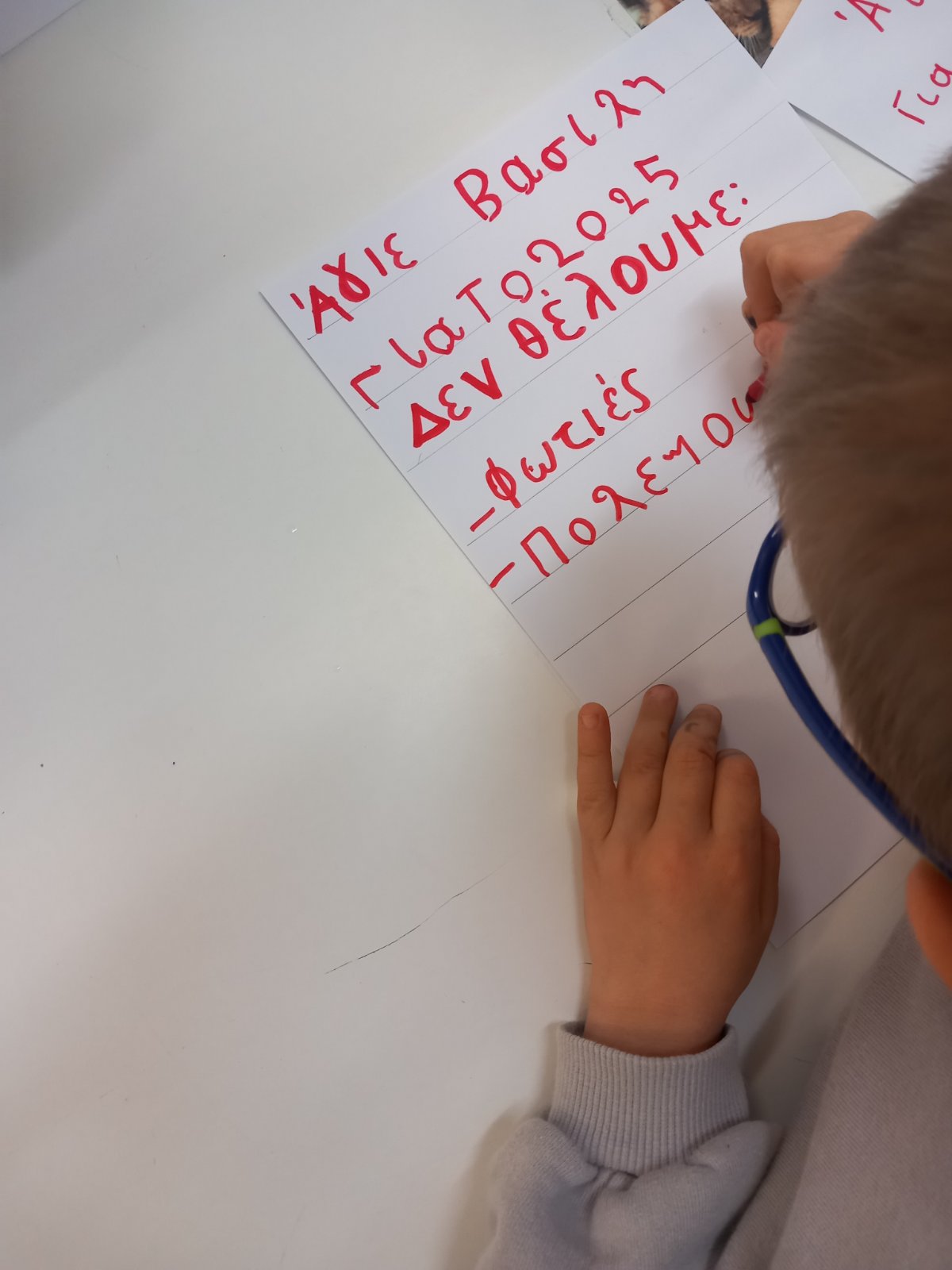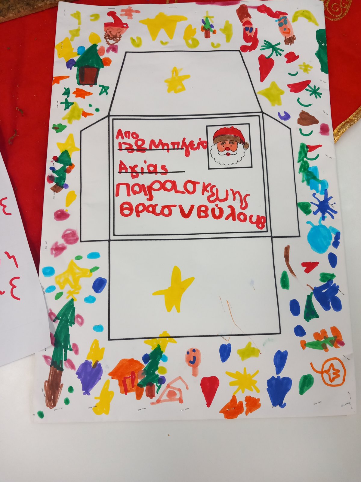 Γράψαμε γράμμα στον Άγιο Βασίλη, ζητώντας του ένα δώρο για την Πρωτοχρονιά, το βάλαμε σε φάκελο και είναι έτοιμο για αποστολή στο ταχυδρομείο της γειτονιάς.