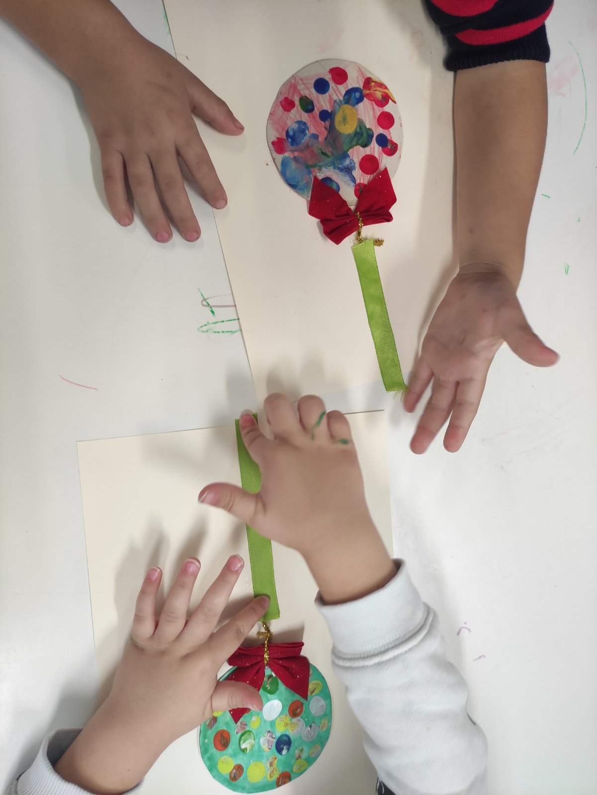 Χριστουγεννιάτικες μπάλες στολισμένες με δαχτυλομπογές