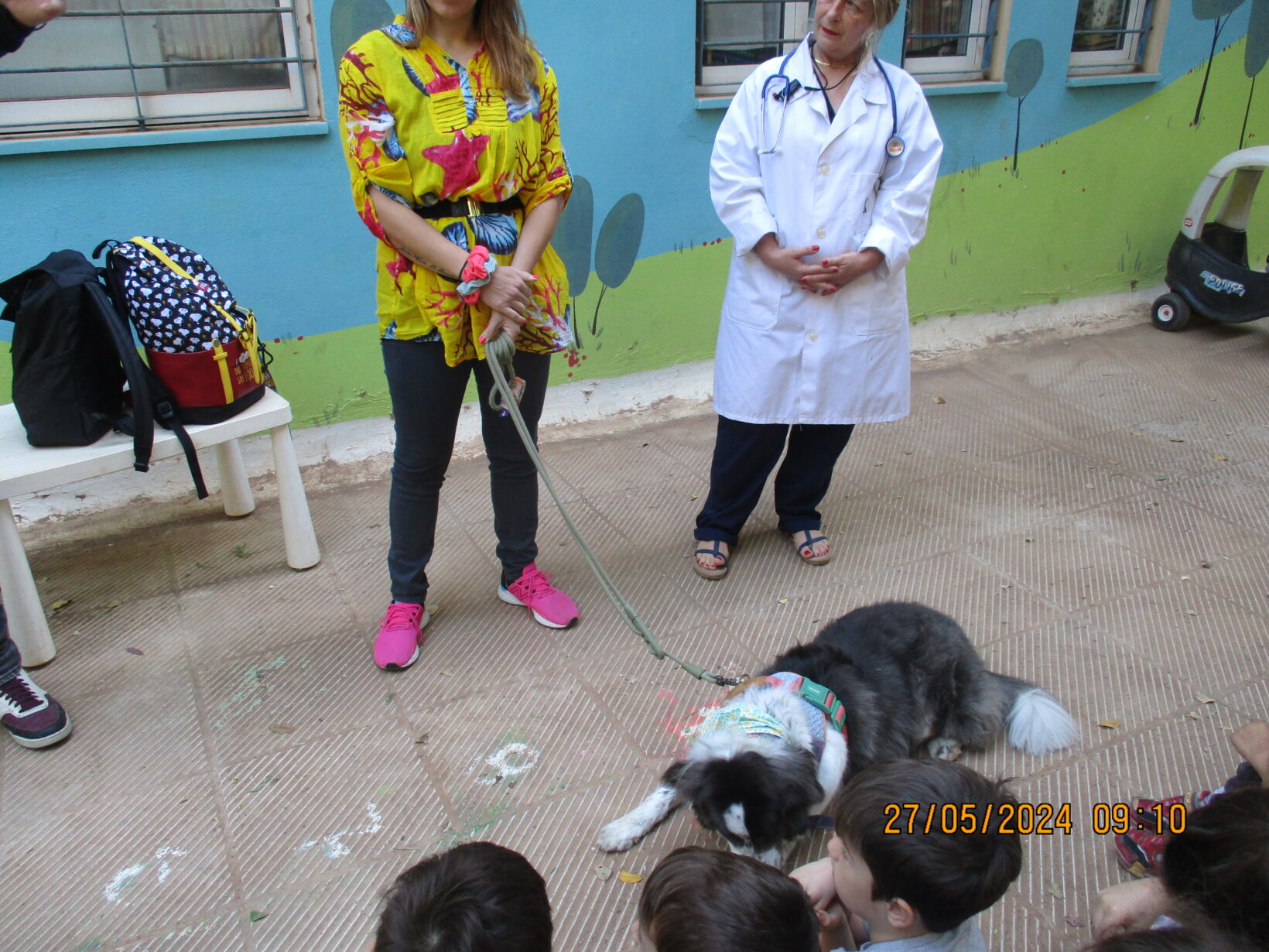 Στις 27 Μαΐου ο “Σύλλογος Φίλων των Ζώων Χαλανδρίου”, στο πλαίσιο των δράσεων ενημέρωσης που υλοποιεί, βρέθηκε στο νηπιαγωγείο μας και γνωρίσαμε το σκυλάκι που μας έφεραν από κοντά. Επίσης μας ενημέρωσαν για το περιβάλλον, την φύση και τα αδέσποτα. Συζήτησαν όλοι μαζί για το πόσο σημαντικό είναι να υιοθετείς ένα αδέσποτο, πως το φροντίζεις, τι κάνουμε όταν το βρίσκουμε στο δρόμο, ποιες είναι οι επιπτώσεις για τα αδέσποτα ζωάκια όταν τα παρατήσει κάποιος…