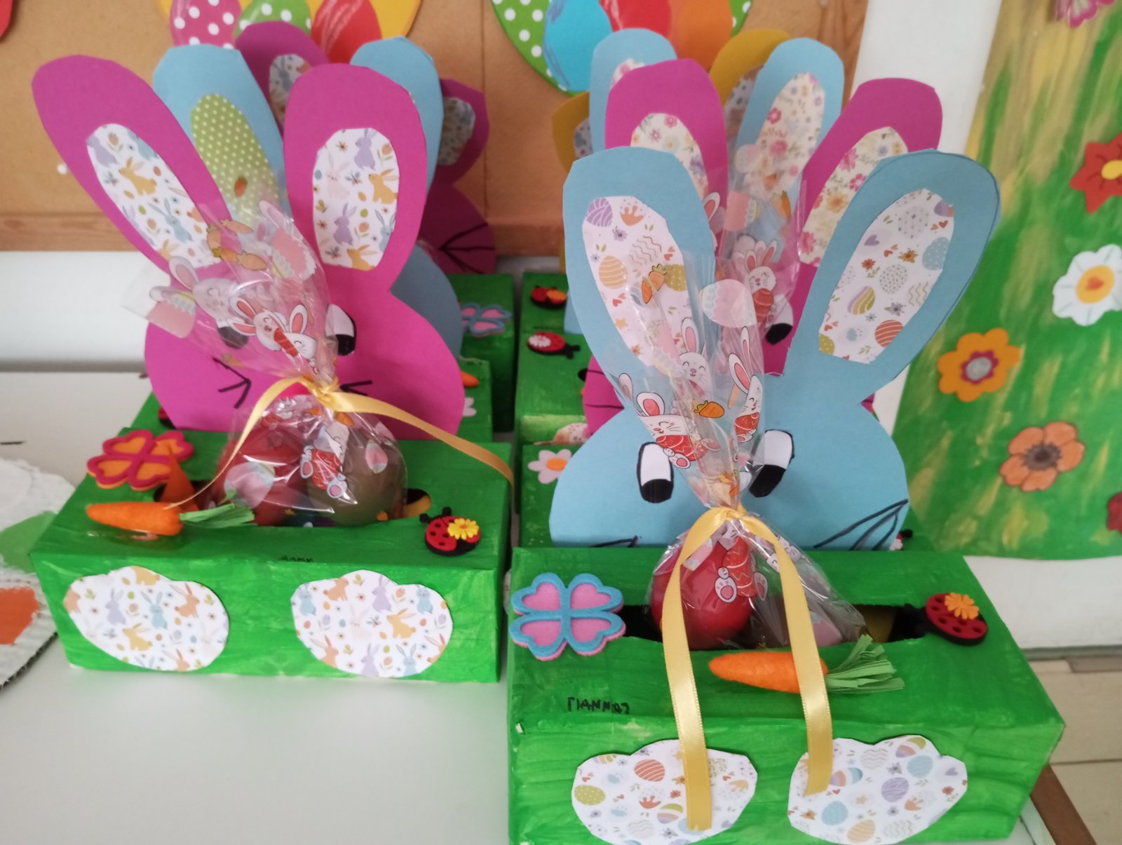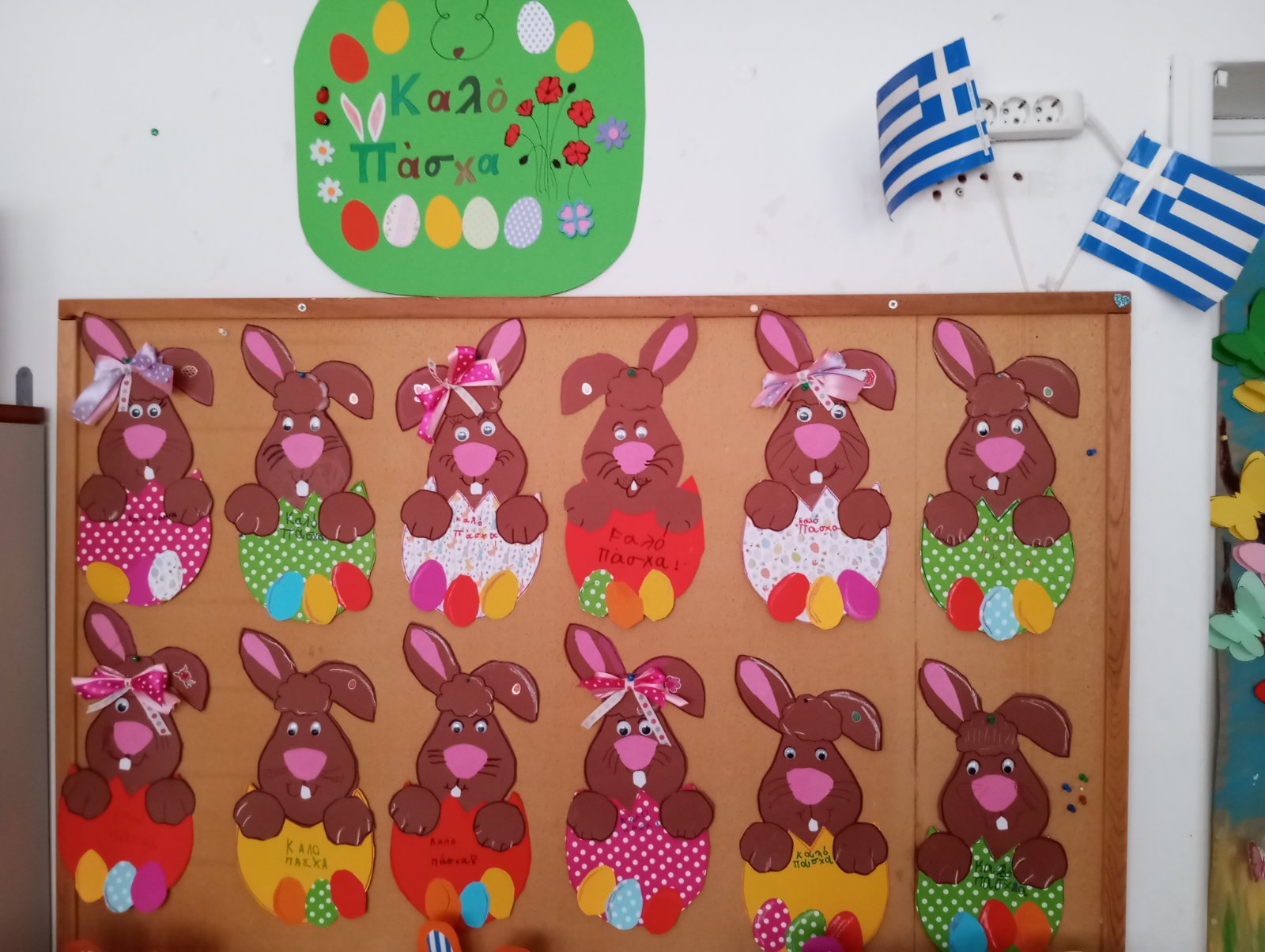 Όπως κάθε χρόνο, έτσι και φέτος το σχολείο μας γέμισε πασχαλινά χρώματα και κατασκευές. Μιλήσαμε για τα έθιμα του Πάσχα, διαβάσαμε παραμύθια με την ιστορία του Πάσχα και φυσικά βάψαμε τα αυγά!!!