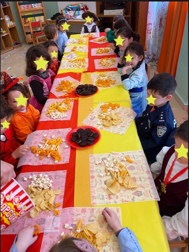 Ακολούθησε εορταστικό τραπέζι με πολλές λιχουδιές για τους μικρούς μας ηθοποιούς.