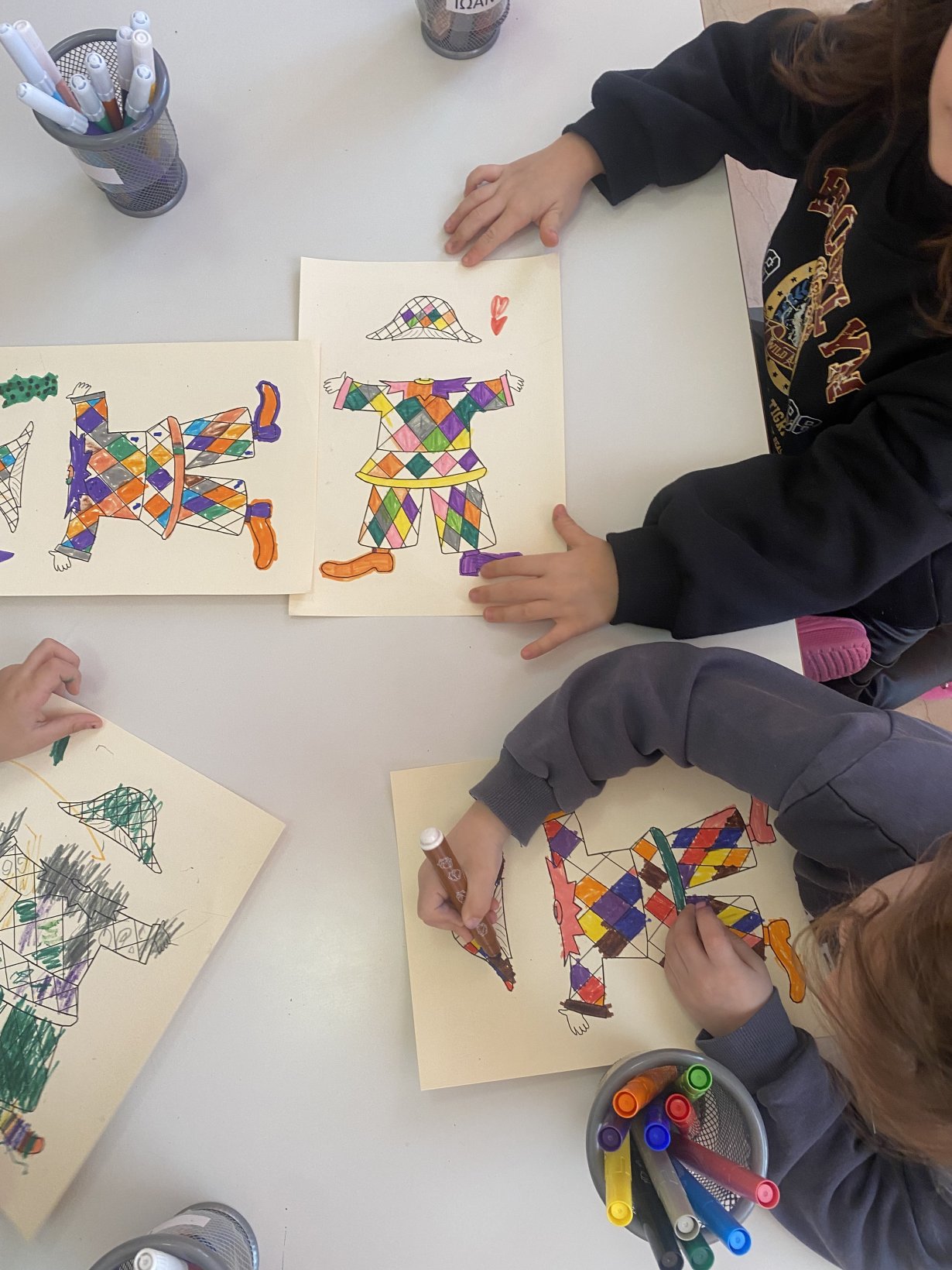Οι μικροί μας καλλιτέχνες ξεκινήσαν τις κατασκευές με αρλεκίνους και οι κλόουν: