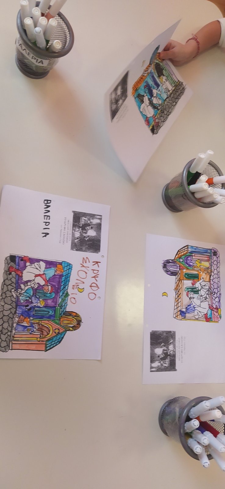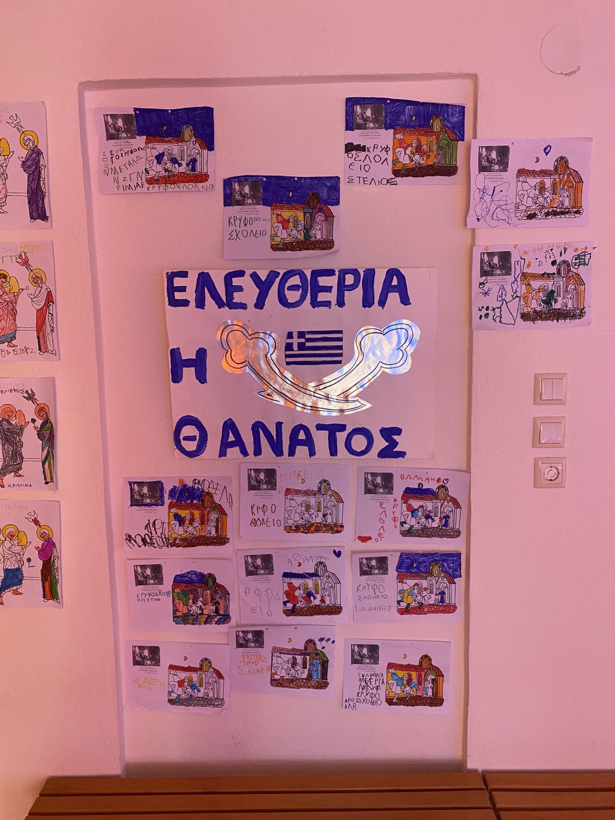 Το Κρυφό Σχολειό: Όταν μιλήσαμε για τις έννοιες της σκλαβιάς και της Ελευθερίας, είπαμε ότι ένα από τα πράγματα που στερούμαστε όταν είμαστε σκλαβωμένοι, είναι το σχολείο. Ήταν λοιπόν μία πολύ καλή αφορμή, να μιλήσουμε για το κρυφό σχολειό. Στη συνέχεια κάναμε τις εργασίες μας.