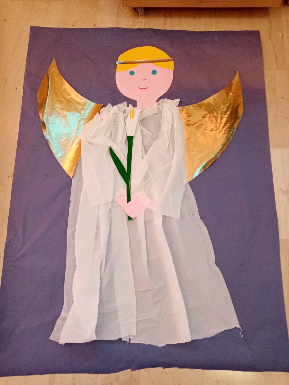Μια μέρα που η Παναγία προσεύχονταν , παρουσιάστηκε ο άγγελος Γαβριήλ! Κρατούσε στο χέρι του ένα ωραίο άσπρο κρίνο . Την χαιρέτησε και με γλυκιά φωνή της είπε