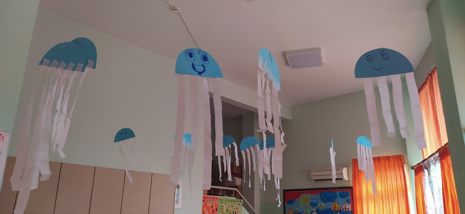 Ξεκινήσαμε τις ετοιμασίες για την γιορτούλα μας. Η αίθουσα ετοιμάστηκε αναλόγως.