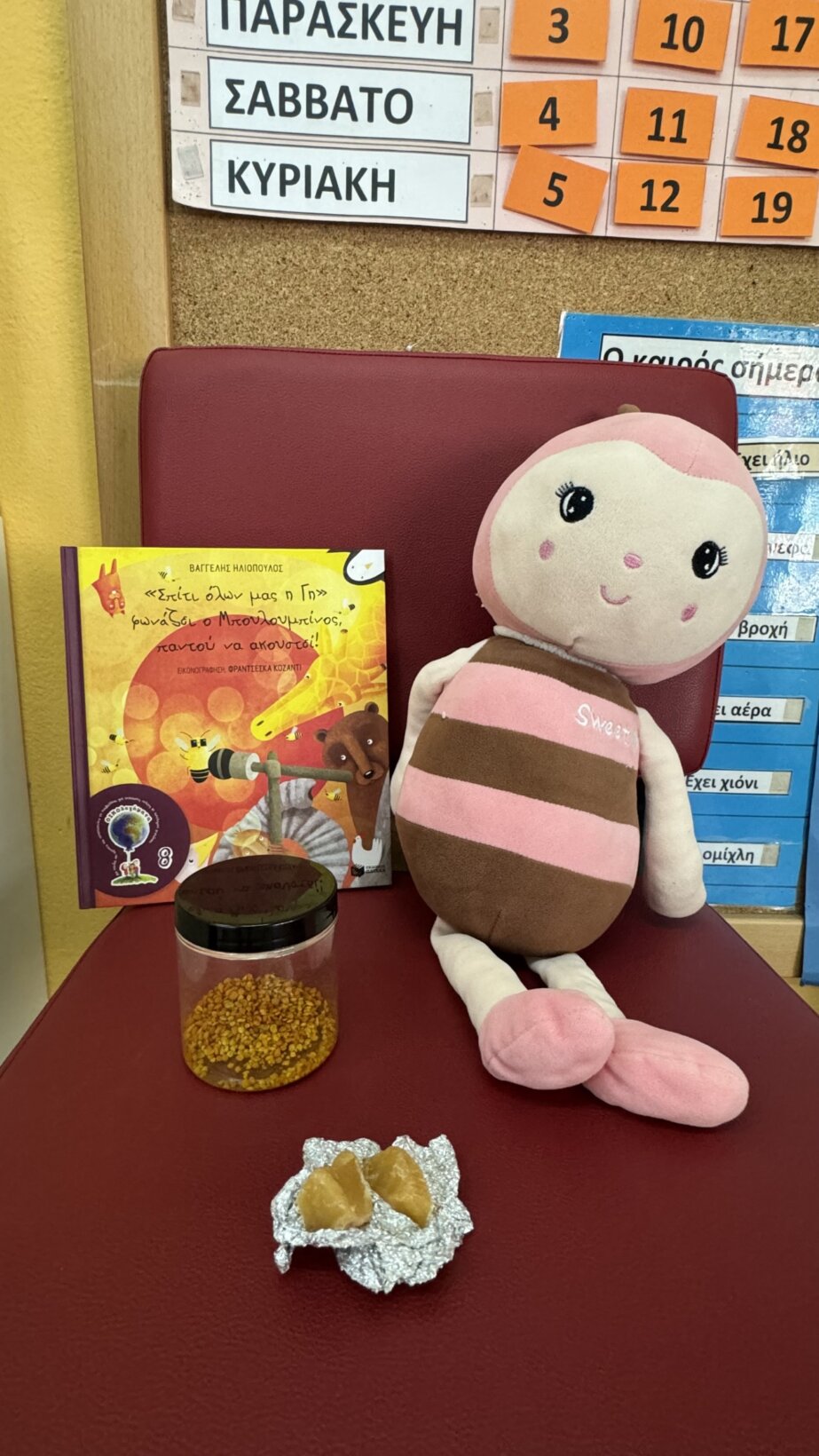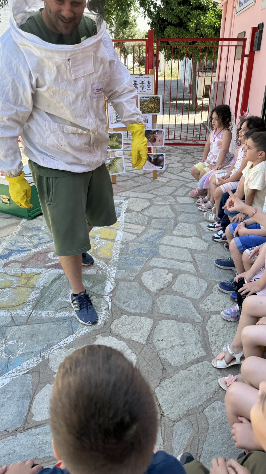 Στη συνέχεια μας επισκέφτηκε Μελισσοκόμος και έδειξε στα παιδιά τη ζωή των μελισσών,   τον τρόπο συλλογής του μελιού και απάντησε σε όλες τις ερωτήσεις τους. Ήταν μια μοναδική εμπειρία για όλους!!