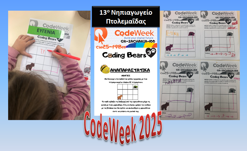 Το Νηπιαγωγείο μας συμμετέχει στην «Εβδομάδα Προγραμματισμού για Όλους» και αυτήν τη χρονιά.