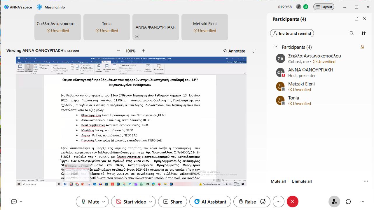 Συνάντηση με το Σύλλογο Γονέων και Κηδεμόνων για τη διοργάνωση του αποκριάτικου πάρτι στο σχολείο μας στις 5/02/2025