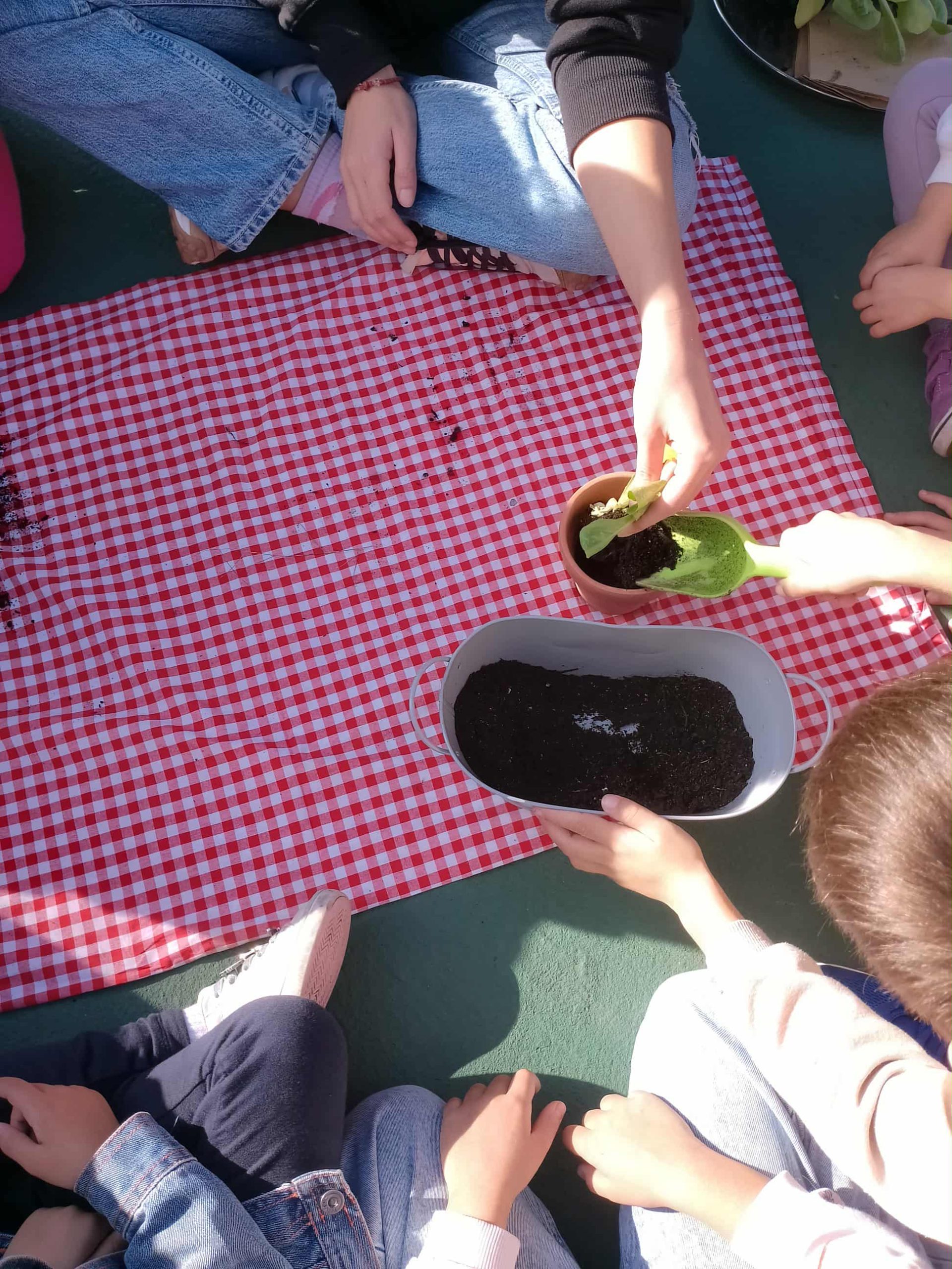 Μαρούλια, σπανάκι, καρότα, μπρόκολο, κόκκινο λάχανο, κρεμμύδια, πανσέδες, φρέζες, κυκλάμινα έφτασαν στο σχολείο αυτό το κυριακάτικο πρωινό . Τα παιδιά, χαρούμενοι κηπουροί, υπό την καθοδήγηση του κυρίου Βασίλη,μπαμπά της Χ., έσκαψαν το χώμα, έμαθαν για τη σύστασή του, φύτεψαν με αγάπη και φροντίδα. Τα παρτέρια μας γέμισαν και τούτη τη χρονιά και θα αναμένουμε τη σοδειά μας. Έξω από την τάξη μας βάλαμε τέσσερα γλαστράκια με άσπρα και ροζ κυκλάμινα για να μας φτιάχνουν τη μέρα. Επαναχρησιμοποιήσαμε πλαστικά μπουκάλια, που τα είχαμε διακοσμήσει σε προηγούμενη μέρα, φυτέψαμε μαρουλάκια και τα προσφέραμε όλοι μαζί, σε καταστήματα εστίασης, στη φιλόξενη πλατεία του Αγίου Ανδρέα.