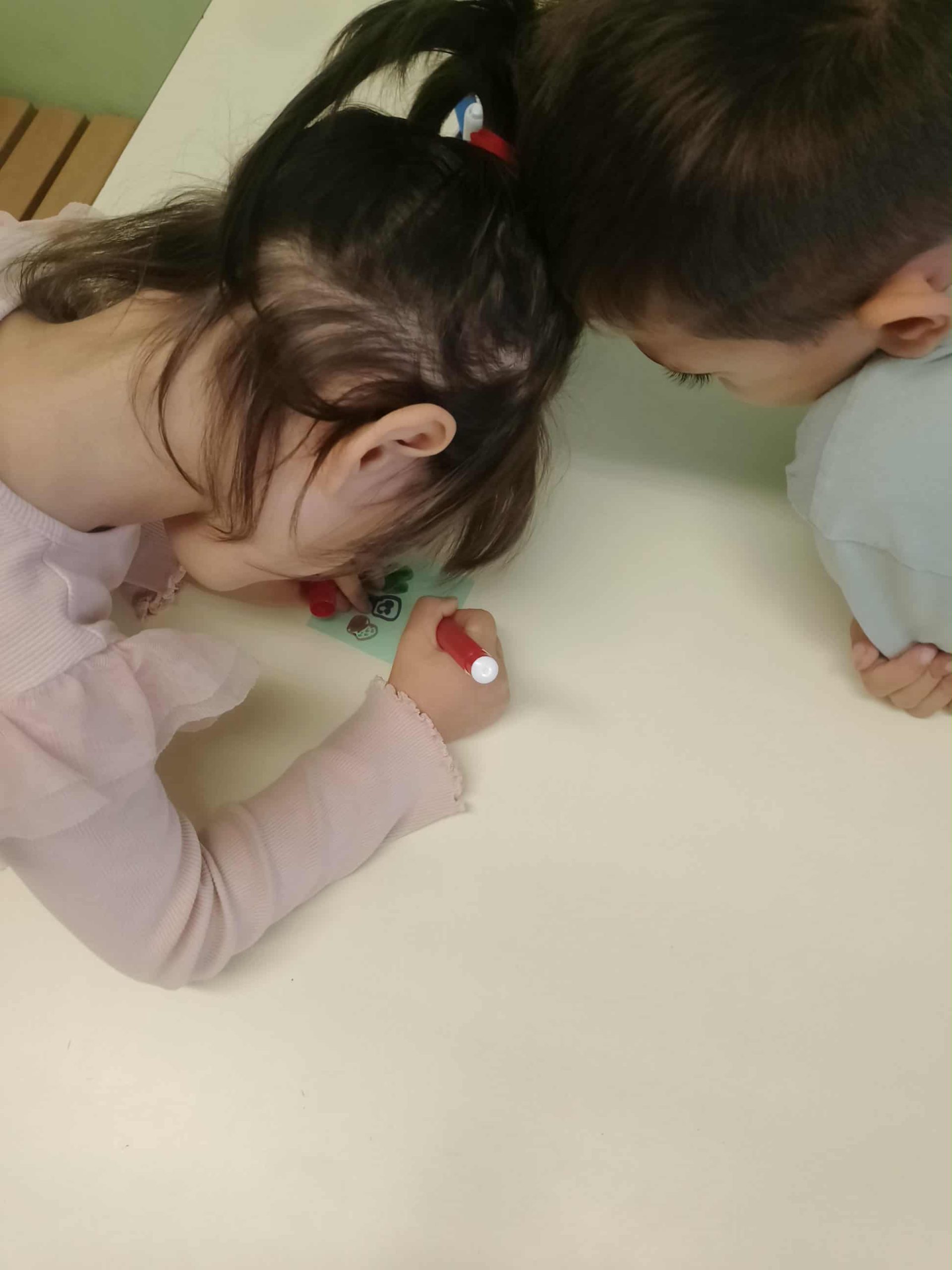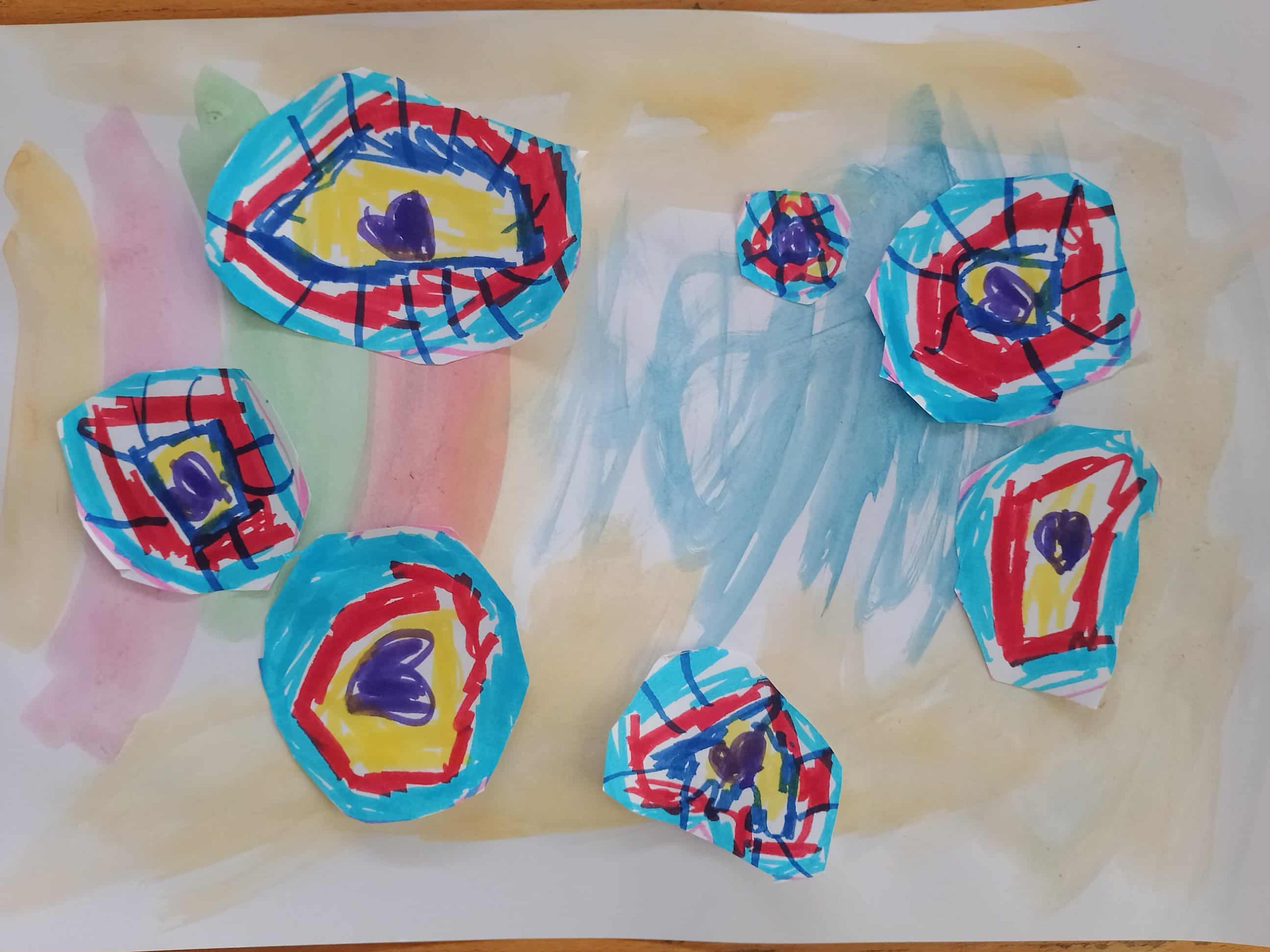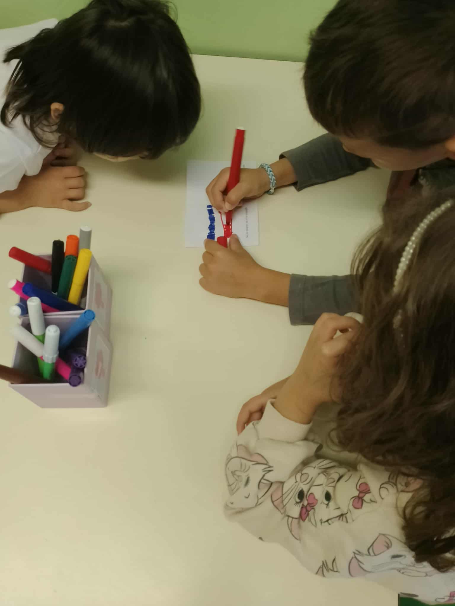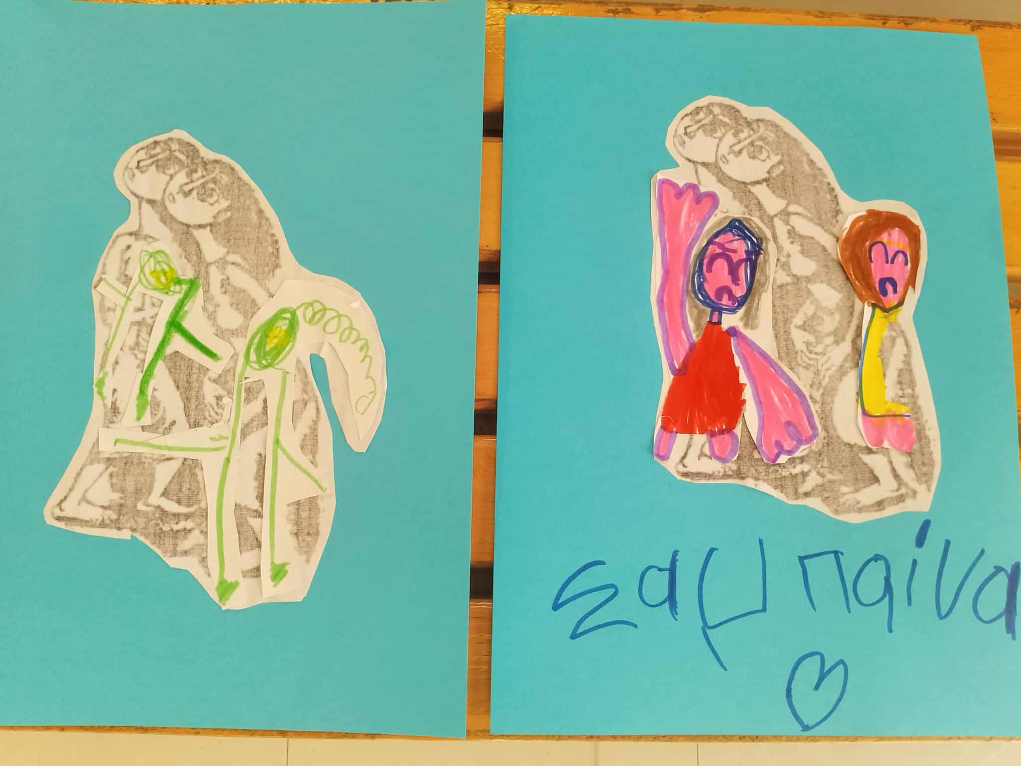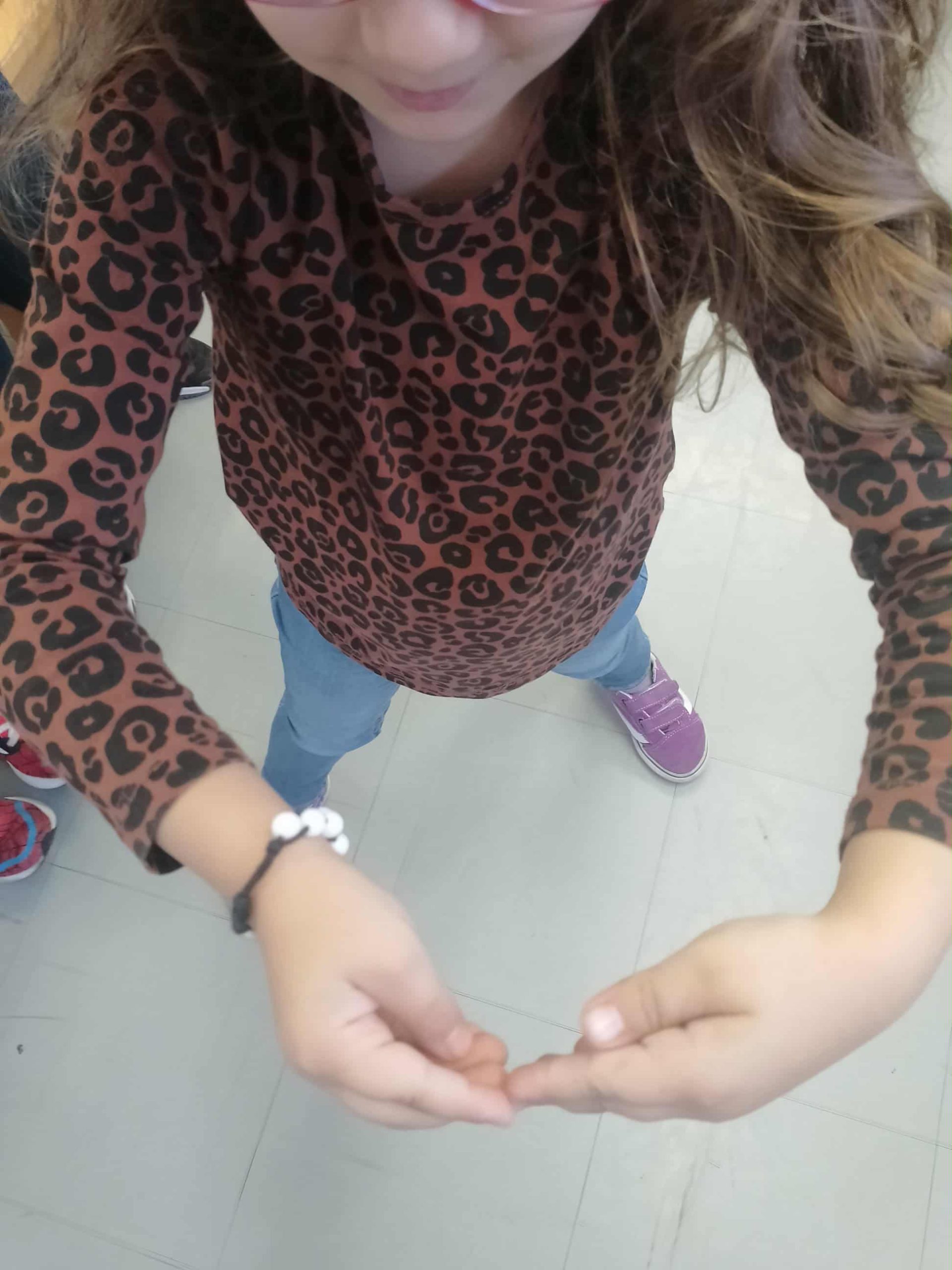 Πριν φύγουμε, χαρίσαμε στην κα Εμμανουέλα και στο διδακτικό προσωπικό ένα πήλινο πιατάκι με ανάγλυφες παραστάσεις και χάρτινες καρδιές όμοιες με τις κουκκίδες της γραφής Braille.Τα παιδιά του ΚΕΑΤ μας χάρισαν καρτέλες με τα ονόματά μας και λουλούδια με τις λέξεις ” Αγάπη” και ” Φιλία” γραμμένα και στις δύο γλώσσες