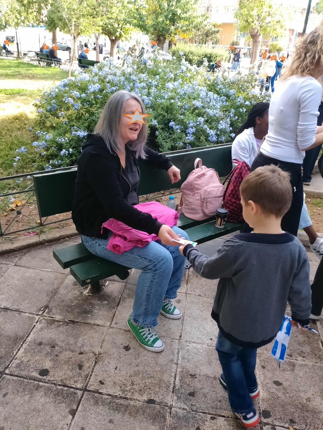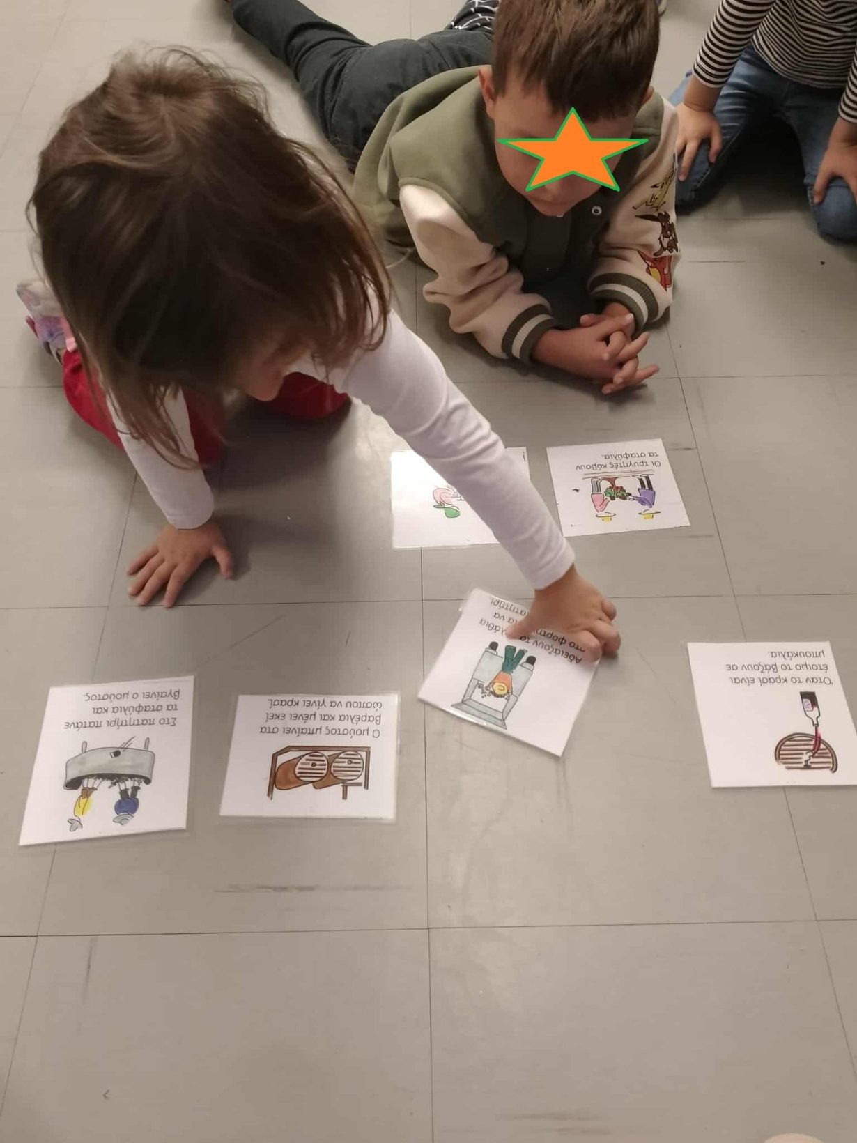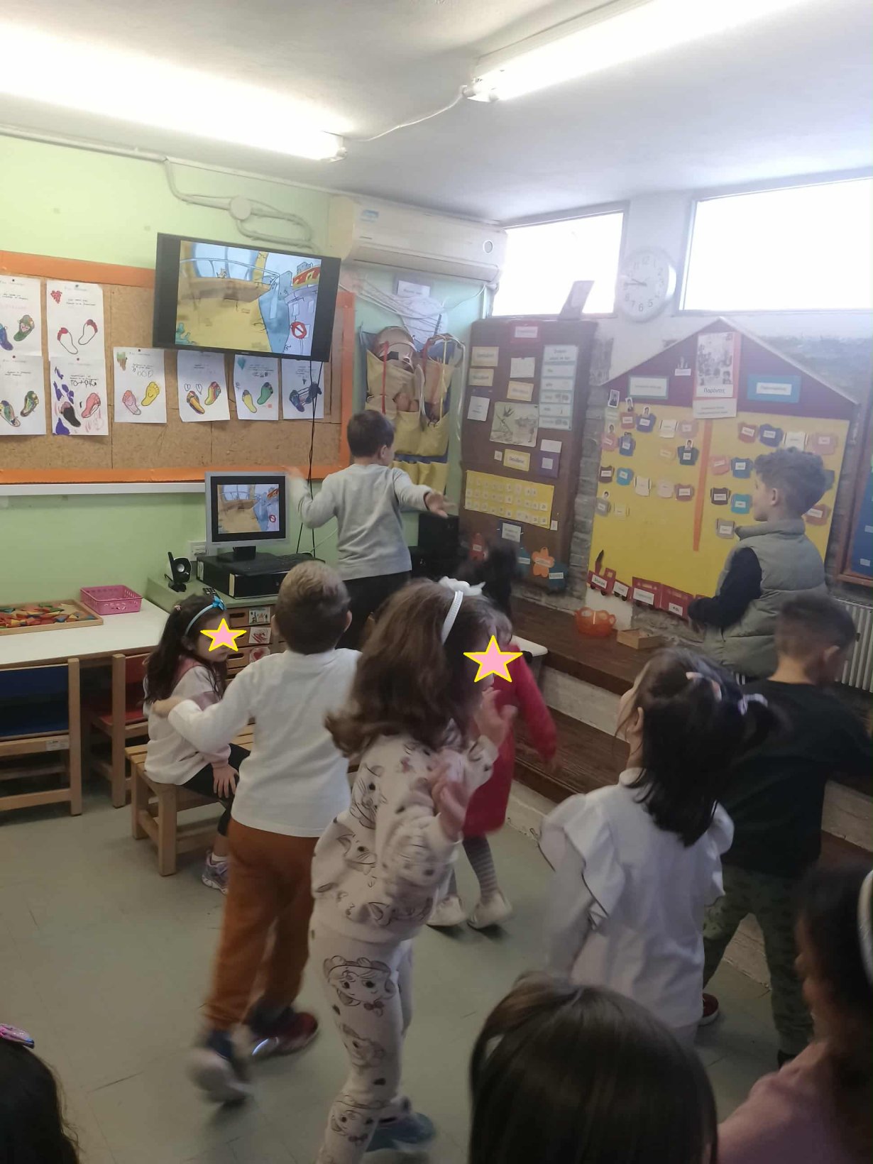 Ο Θ. μας ” διάβασε” με τον υπέροχο τρόπο του το βιβλίο που είχε φτιάξει με τους συμμαθητές του για μία κάμπια ( ” Μια κάμπια πολύ πεινασμένη” του Έρικ Καρλ, εκδ. Καλειδοσκόπιο) , χαϊδεύοντας τα ανάγλυφα υλικά και χαρτόνια που είχαν χρησιμοποιήσει για την εικονογράφησή του. Στη συνέχεια, πλησίασε τα παιδιά και τα άγγιξε φιλικά ζητώντας να μάθει τα ονόματά τους . Φεύγοντας από την τάξη είπε ότι χάρηκε πολύ που μας γνώρισε!!