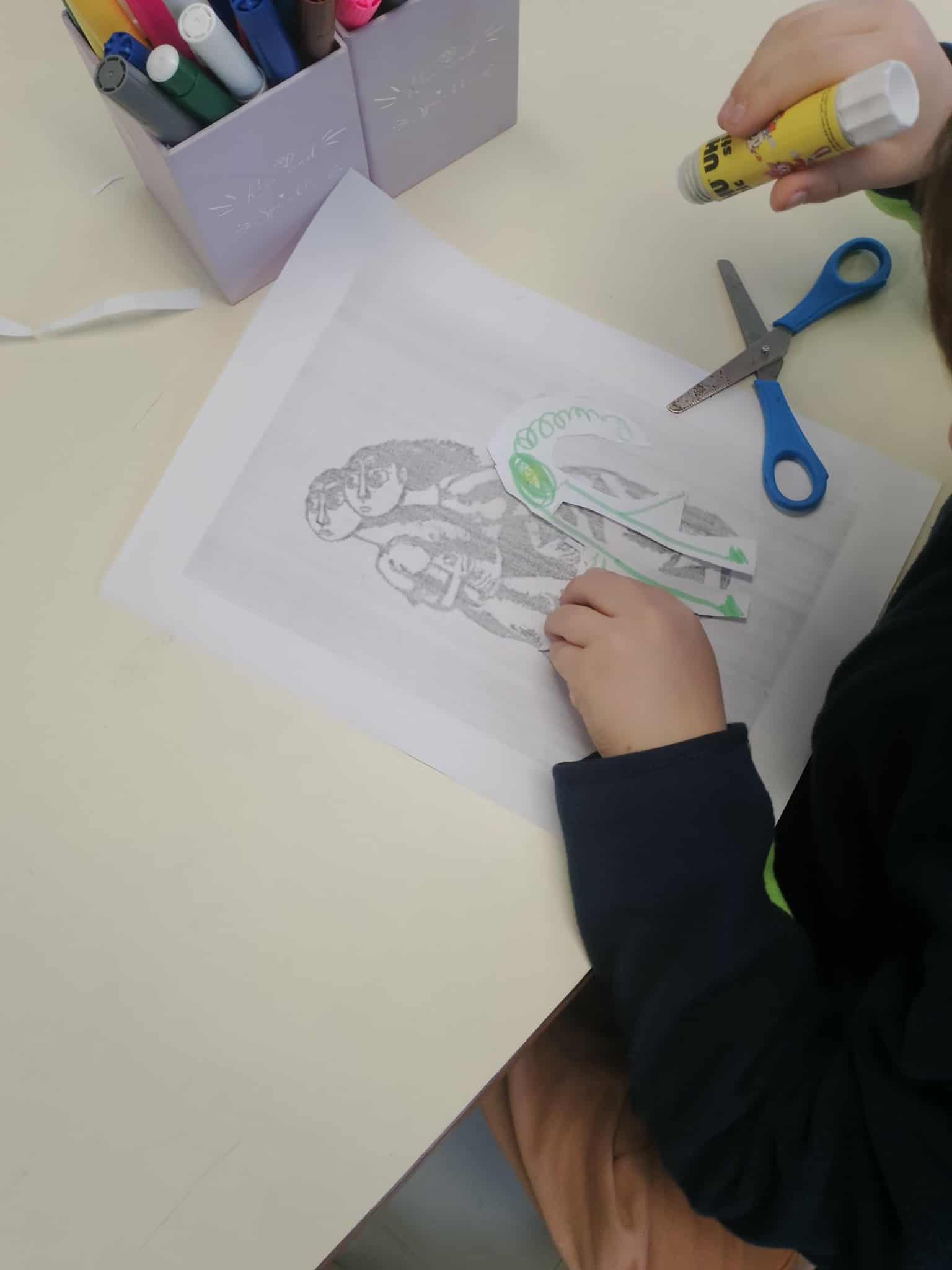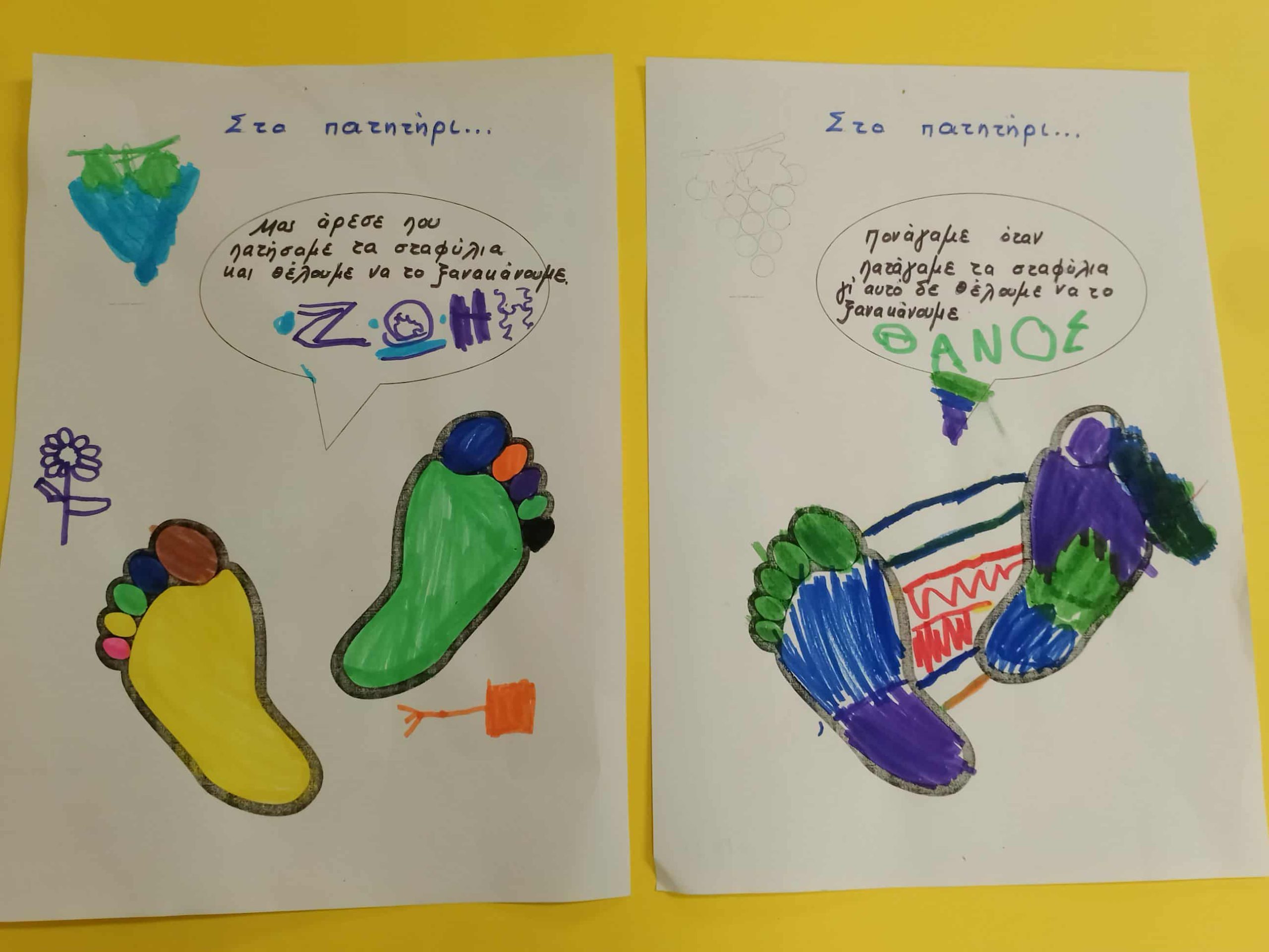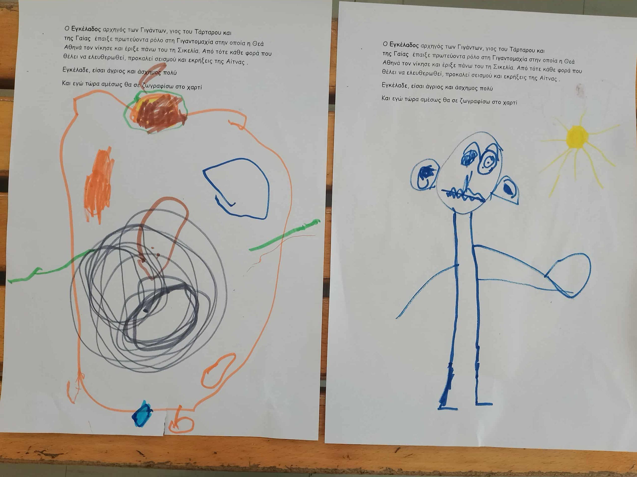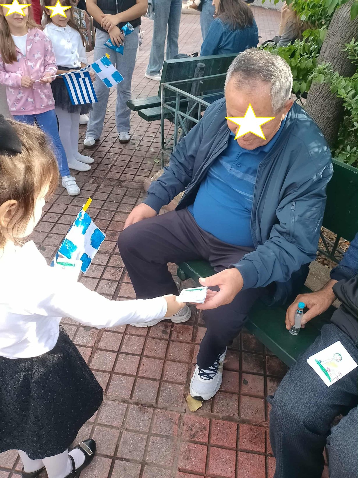 Ο Θ. μας ” διάβασε” με τον υπέροχο τρόπο του το βιβλίο που είχε φτιάξει με τους συμμαθητές του για μία κάμπια ( ” Μια κάμπια πολύ πεινασμένη” του Έρικ Καρλ, εκδ. Καλειδοσκόπιο) , χαϊδεύοντας τα ανάγλυφα υλικά και χαρτόνια που είχαν χρησιμοποιήσει για την εικονογράφησή του. Στη συνέχεια, πλησίασε τα παιδιά και τα άγγιξε φιλικά ζητώντας να μάθει τα ονόματά τους . Φεύγοντας από την τάξη είπε ότι χάρηκε πολύ που μας γνώρισε!!
