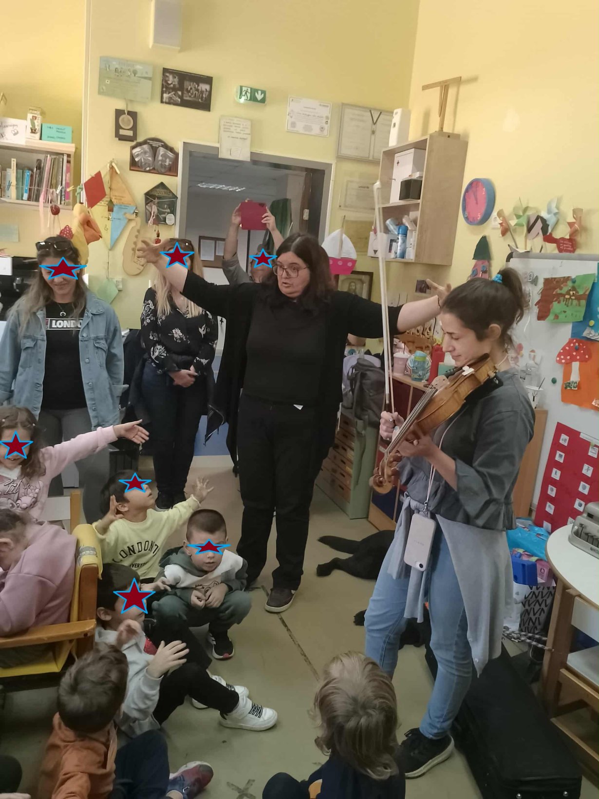 Η κα Εμμανουέλα, η μουσικός, ήρθε στην τάξη κρατώντας τον οδηγό της τον Divo ο οποίος τη συντροφεύει τα τελευταία τέσσερα χρόνια. Μας έπαιξε στο βιολί το τραγούδι ” Αν όλα τα παιδιά της Γης” και εμείς το τραγουδήσαμε κάνοντας κάποιες κινήσεις στη νοηματική γλώσσα. Μας είπε ότι τα σκυλιά οδηγοί εκπαιδεύονται για δύο χρόνια, υπάρχουν συνολικά γύρω στα 25 σε όλη την Ελλάδα, για να αποκτήσει ένας τυφλός σκύλο απαιτούνται αρκετές προϋποθέσεις , ενώ η αγορά του γίνεται μέσω χορηγιών καθώς κοστίζει αρκετές χιλιάδες ευρώ.Μας έμαθε ακόμα ότι όταν ο σκύλος φορά το ειδικό σαμάρι , δεν επιτρέπεται κανείς να τον πλησιάσει , να του μιλήσει ή να τον χαϊδέψει , επειδή αποσπάται η προσοχή του από το έργο που έχει αναλάβει. Όταν όμως βγαίνει το σαμάρι , τότε γίνεται ένας σκύλος σας όλους τους άλλους.