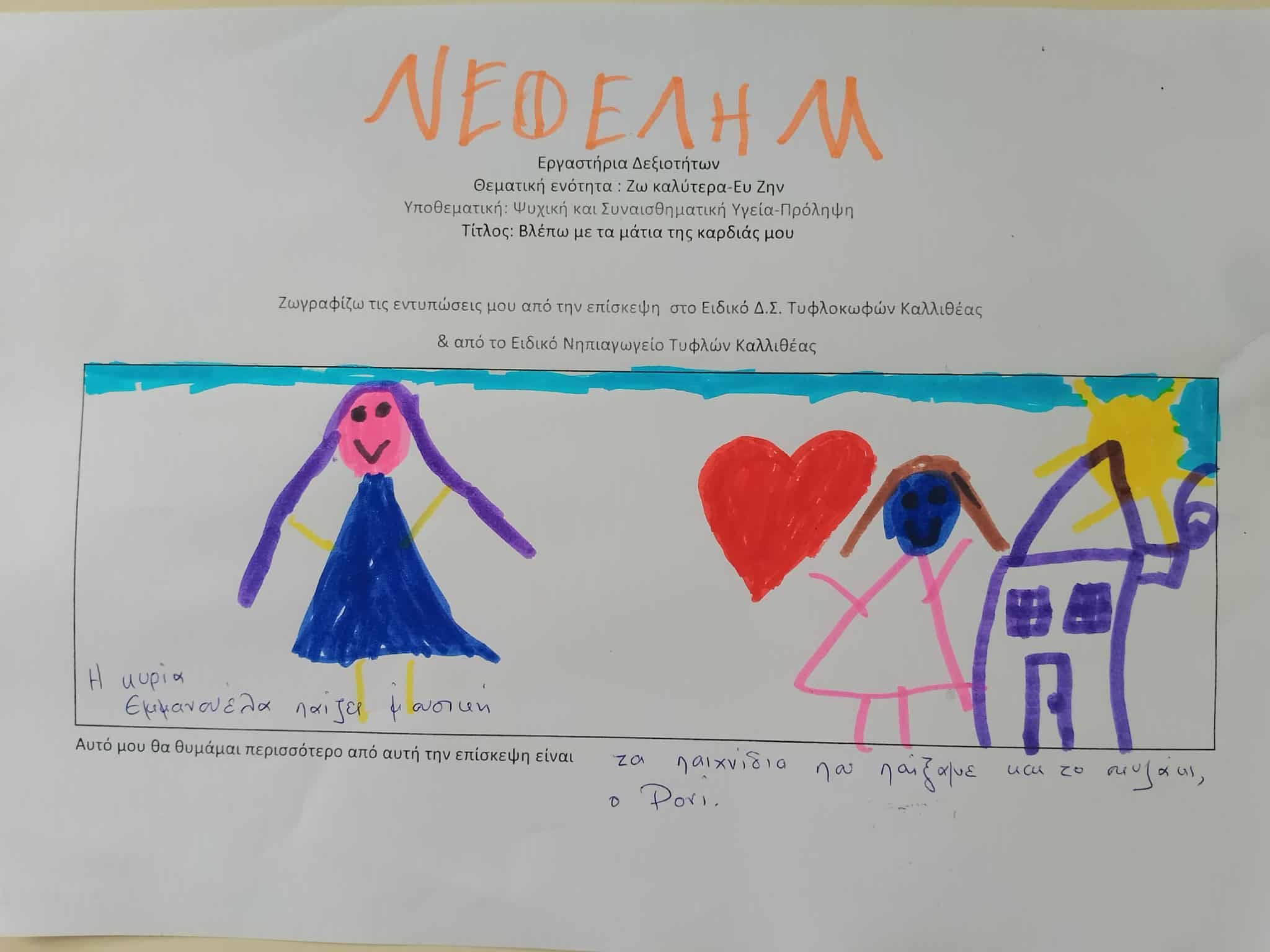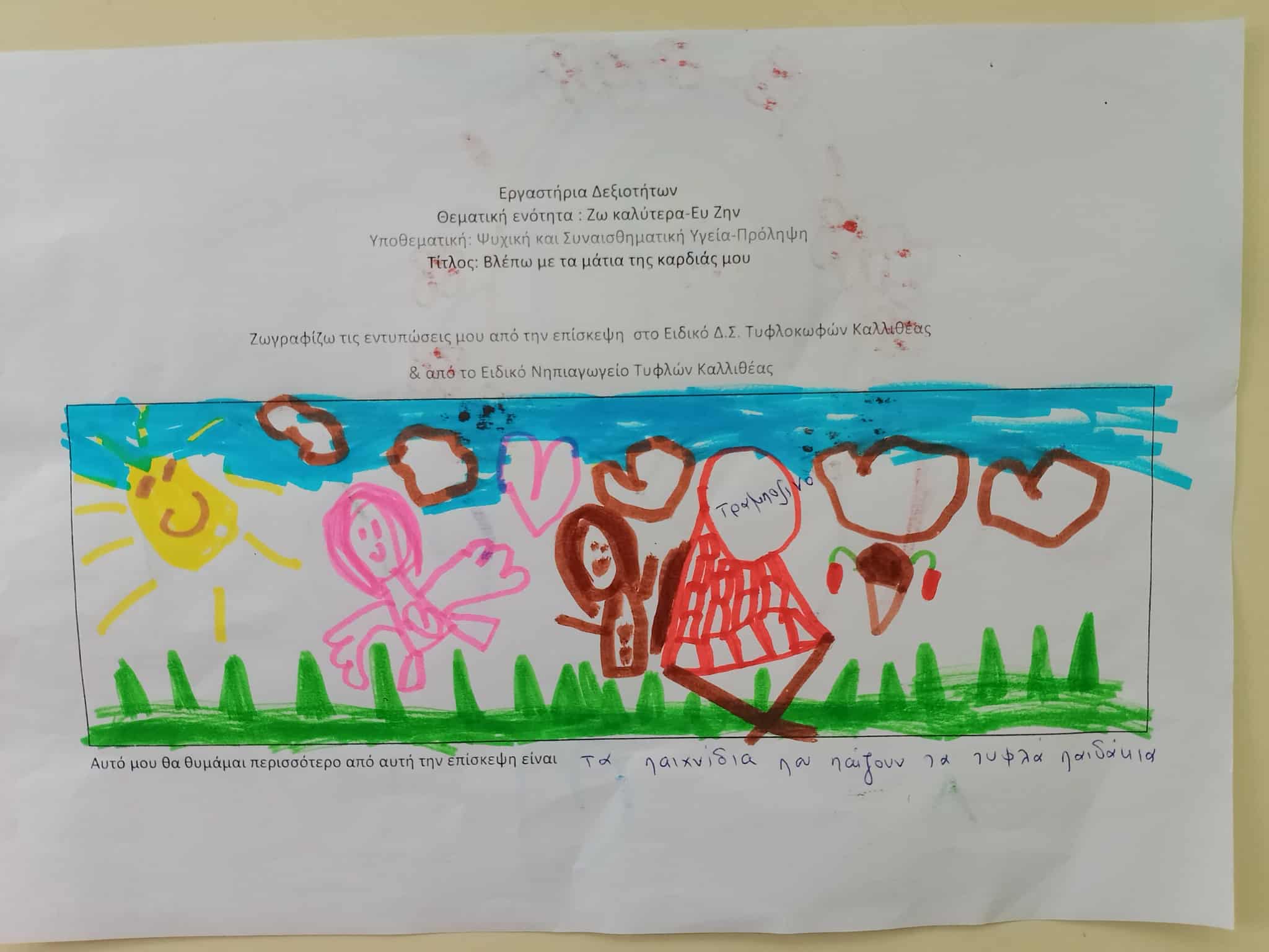 Σήμερα ζήσαμε μια μοναδική εμπειρία στην Καλλιθέα. Επισκεφθήκαμε το Ολοήμερο Ειδικό Δ.Σ. Τυφλών , το Ειδικό Δ.Σ. Τυφλοκωφών , και το Ειδικό Νηπιαγωγείο Τυφλών.