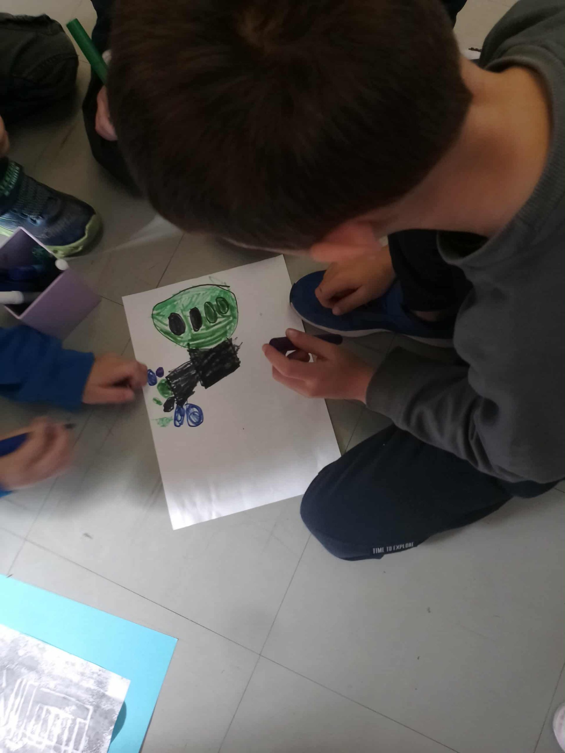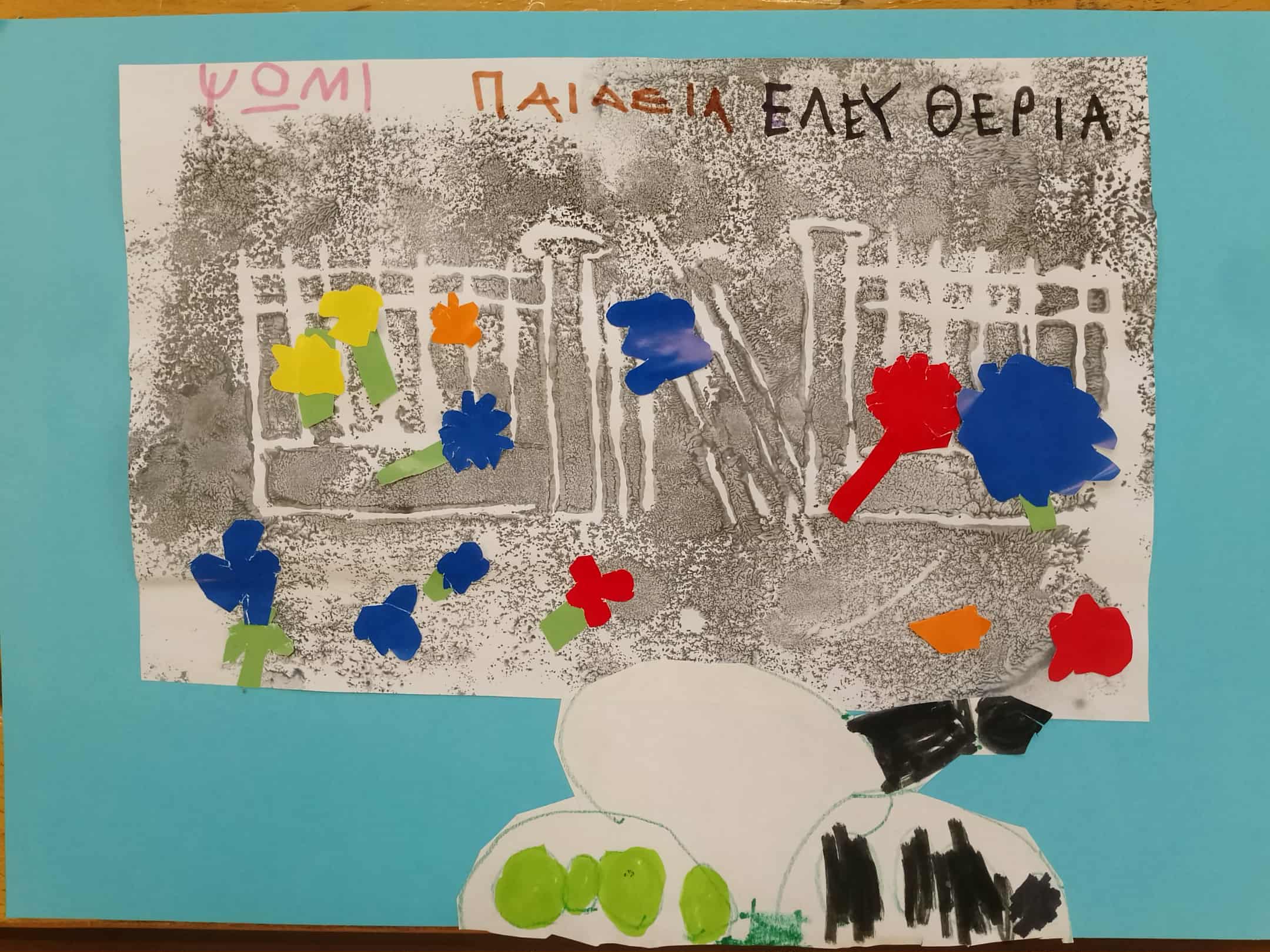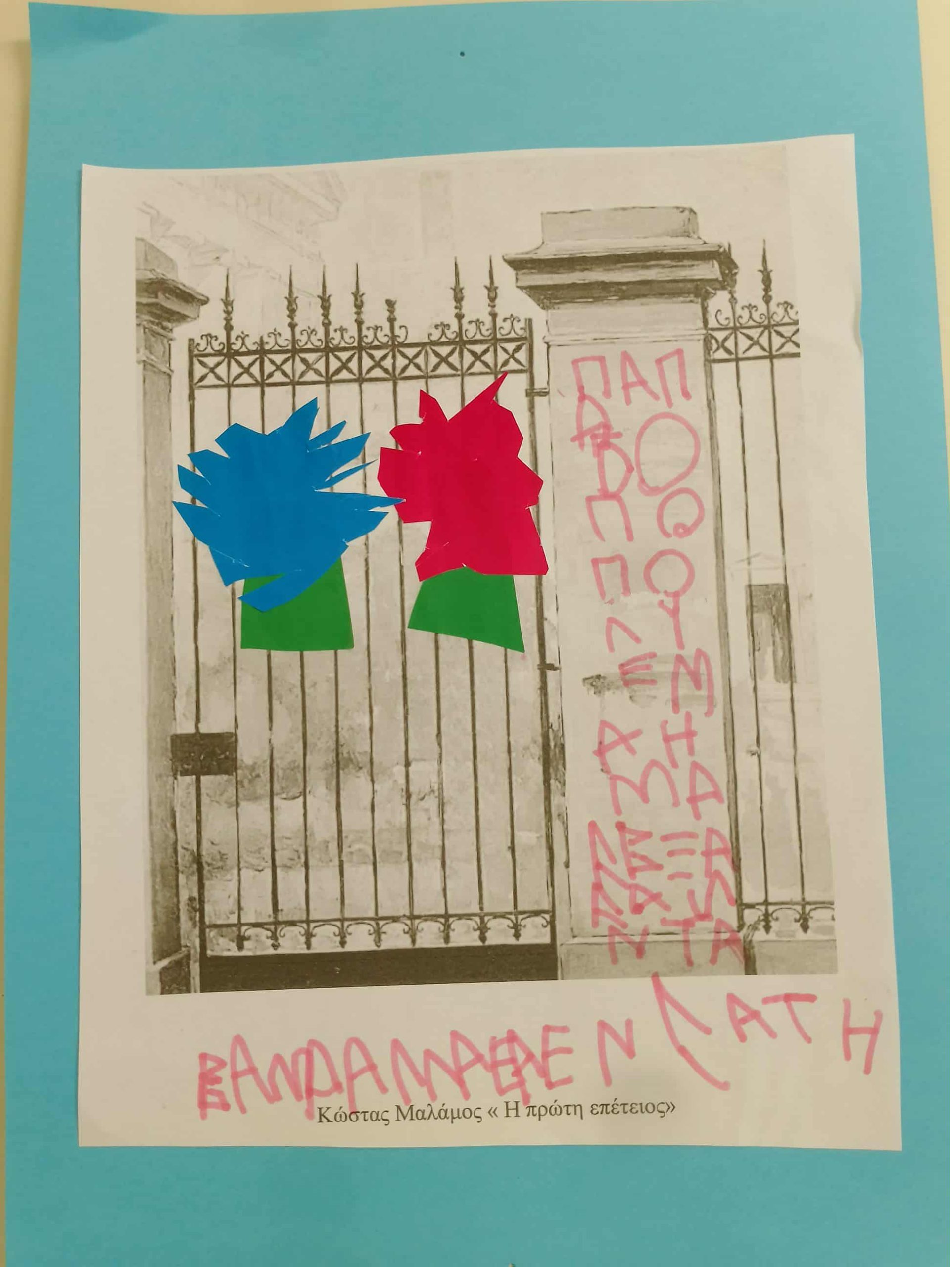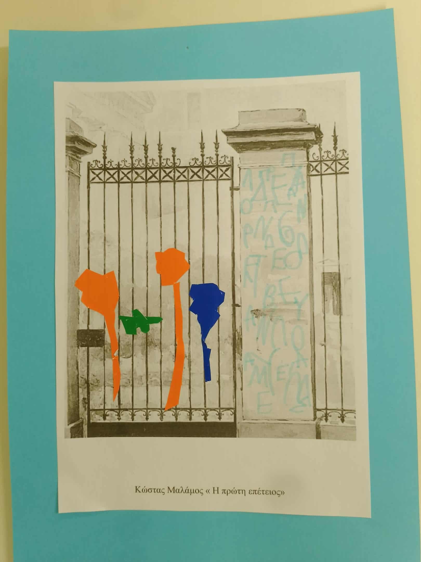 Τα παιδιά αναδημιουργούν τον πίνακα και όσα επιθυμούν γράφουν και ένα σύνθημα στην κολώνα