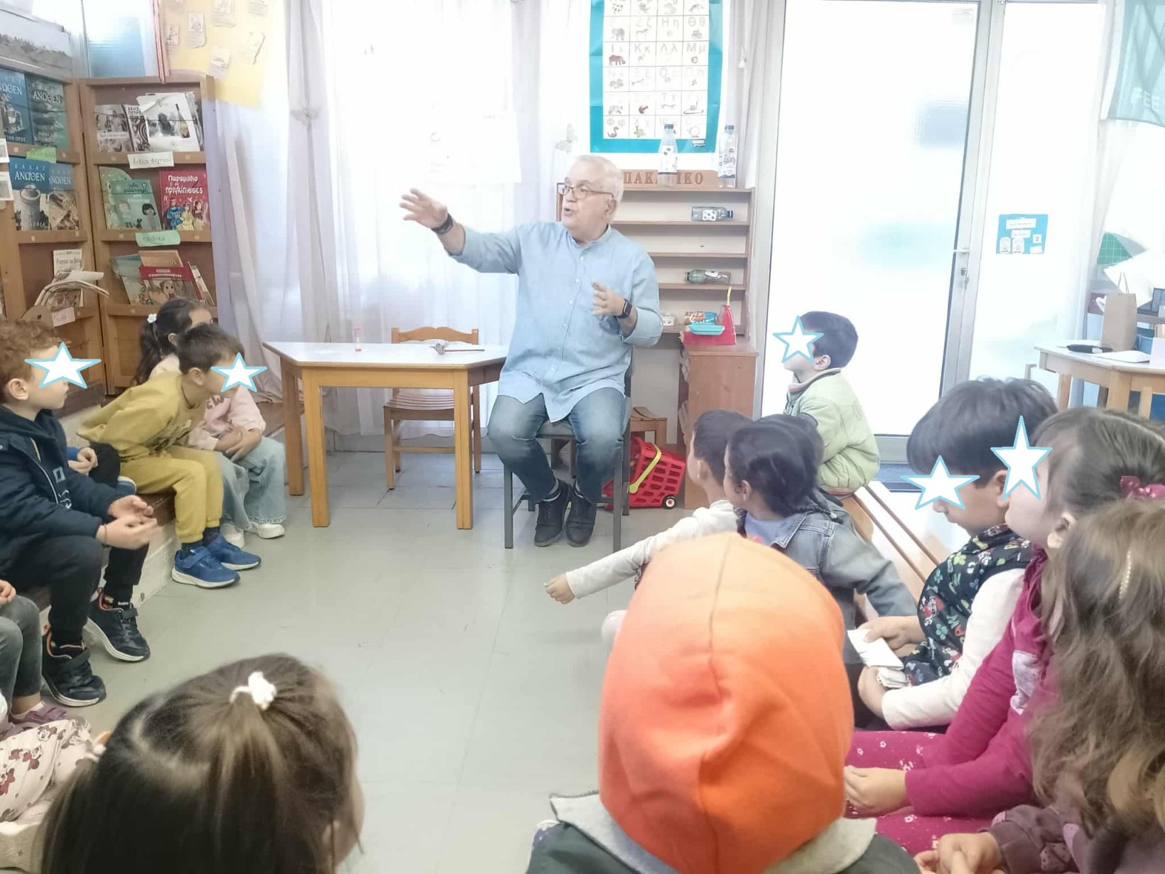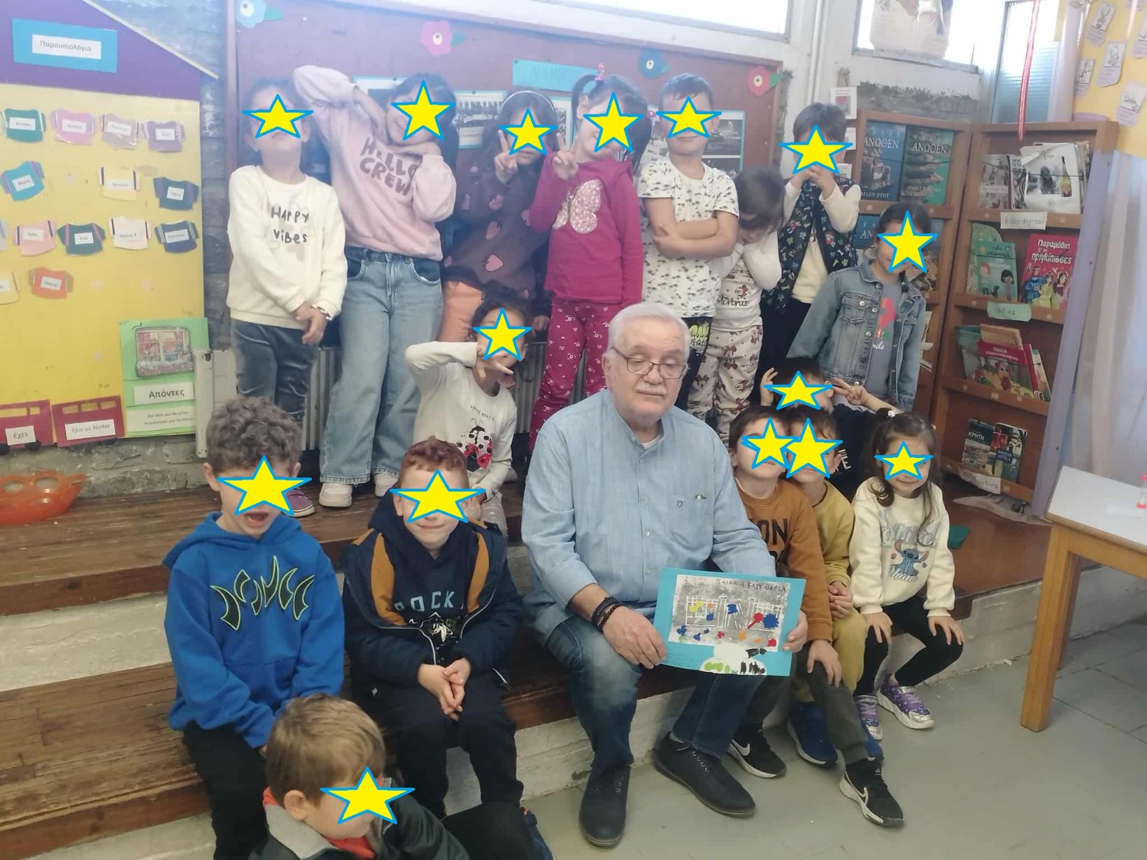 Ο κύριος Χρήστος ευχαρίστησε πολύ τα παιδιά και έβγαλε μια αναμνηστική φωτογραφία μαζί τους.