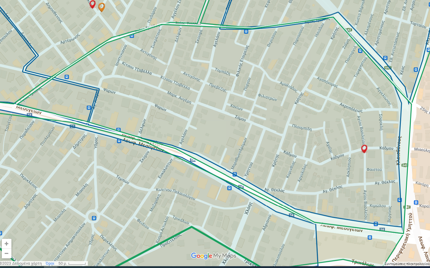 Χάρτης γεωγραφικών ορίων 14ου Νηπιαγωγείου Αγίας Παρασκευής