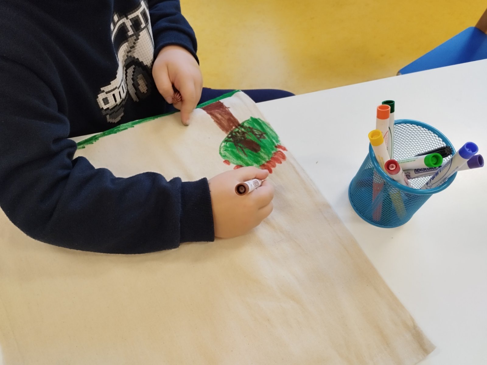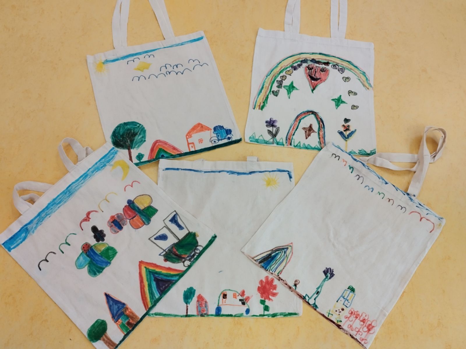 Τα παιδιά ζωγράφισαν τις πάνινες τσάντες με τις οποίες θα μεταφέρουν τα βιβλία..