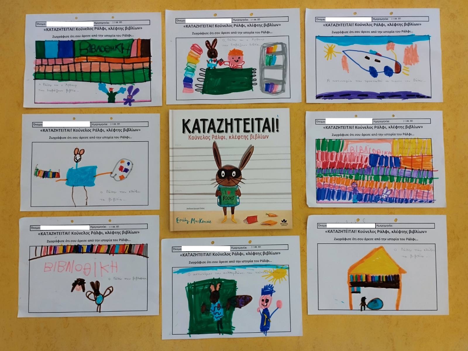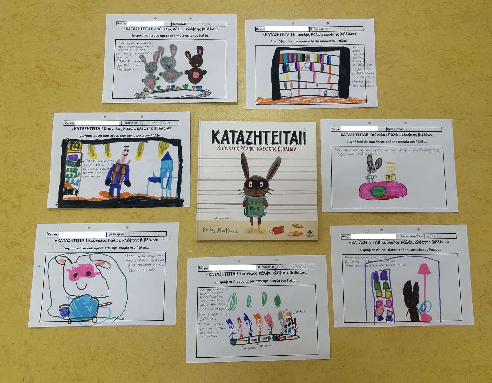 Ξεκινήσαμε διαβάζοντας ένα παραμύθι με τίτλο : “Καταζητείται !! Κούνελος Ραλφι, κλέφτης βιβλίων” και ακολούθησε συζήτηση με τα παιδιά. Έπειτα ζωγράφισαν αυτό που τους άρεσε περισσότερο από το παραμύθι…