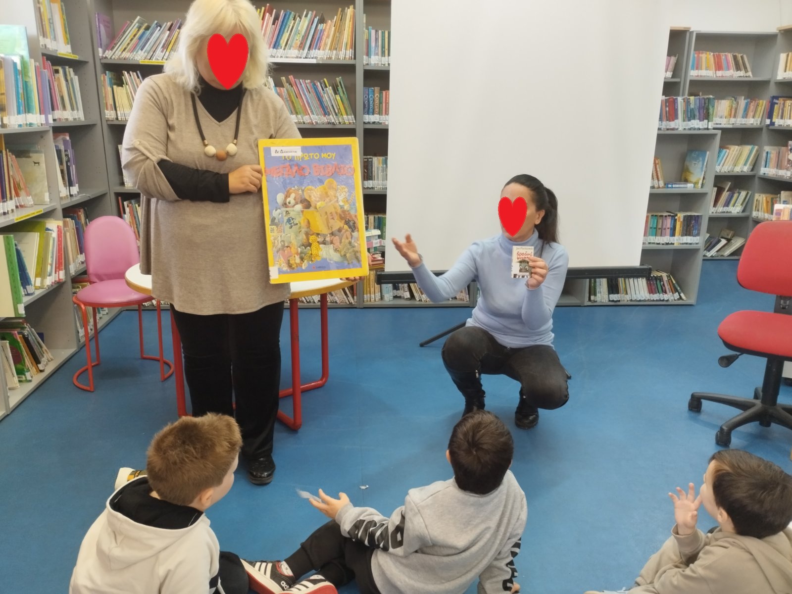 Εκεί, μας υποδέχθηκαν με χαρά οι βιβλιοθηκονόμοι και αφού μας ξενάγησαν στο χώρο της βιβλιοθήκης, τα παιδιά ξεφύλλισαν διάφορα παραμύθια και πραγματικά ενθουσιάστηκαν!