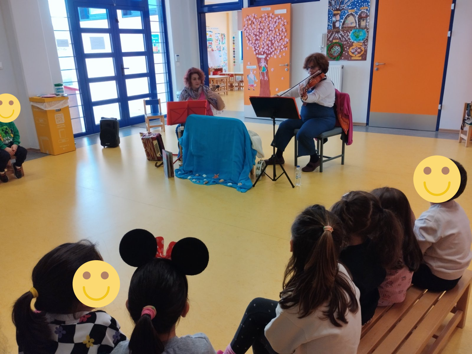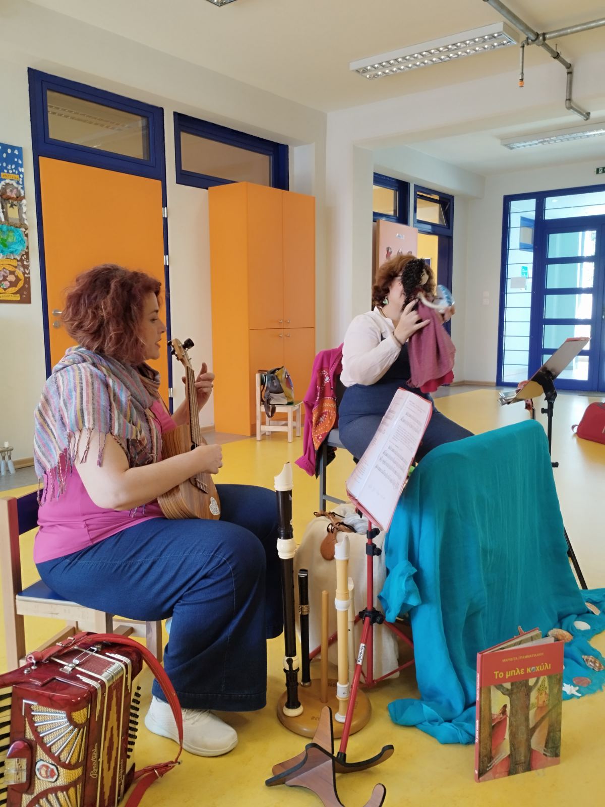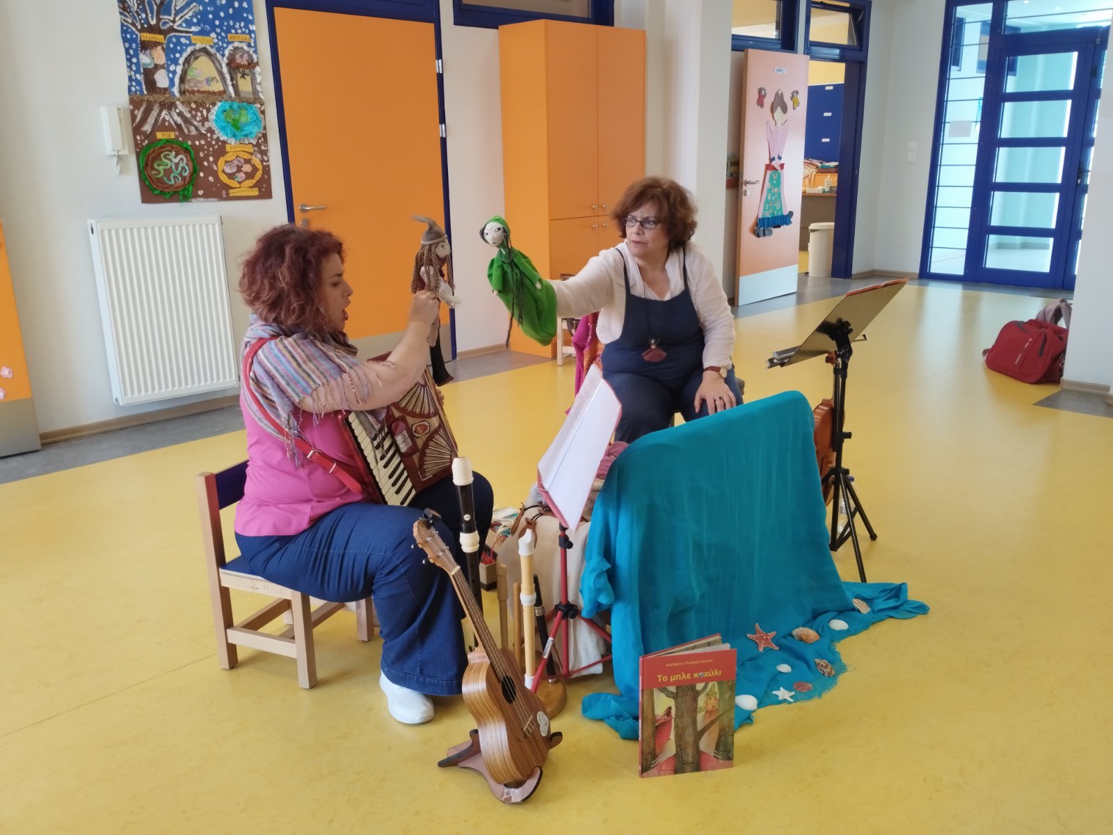 Με αφορμή την Παγκόσμια Ημέρα Παιδικού Βιβλίου και στα πλαίσια του ετήσιου σχεδίου δράσης του σχολείο μας με τίτλο: “Με ένα βιβλίο αγκαλιά, μαθαίνω πράγματα πολλά!”, στο νηπιαγωγείο μας παρακολουθήσαμε το εκπαιδευτικό πρόγραμμα “Το μπλε κοχύλι” από την καλλιτεχνική ομάδα “Μελωδικές Εξερευνήσεις”.