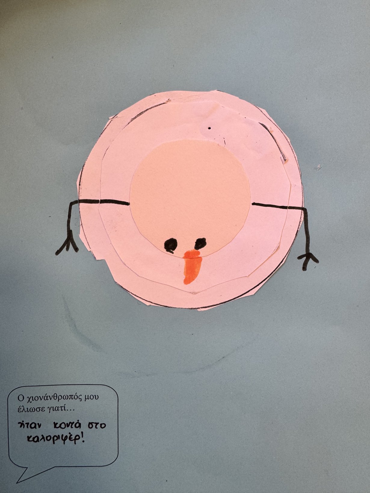 Αρχικά, μιλήσαμε για τις τέσσερις εποχές και τα χαρακτηριστικά τους. Παρατηρήσαμε τις αλλαγές στη φύση, συζητήσαμε για τον καιρό, τα ρούχα που φοράμε τον χειμώνα και συγκρίναμε τις εποχές μεταξύ τους. Μιλήσαμε για τον Ιανουάριο και το φεγγάρι του, για τον χιονάνθρωπο και το χιόνι.