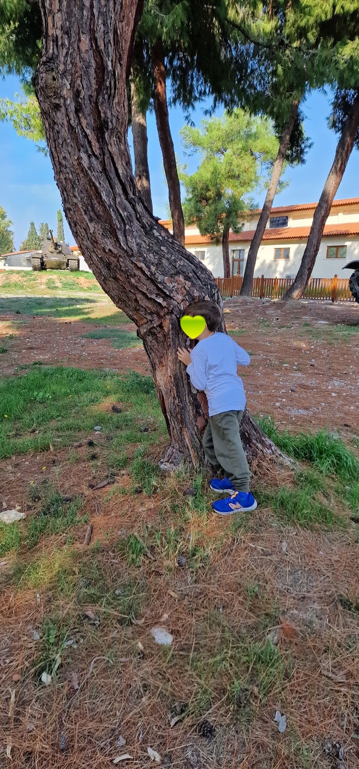 5. Αγκαλιάζουμε τα δέντρα του Μουσείου. Καθένα από αυτά έχει να μας πει μια ιστορία από τον πόλεμο. Ακούμε προσεκτικά τις ιστορίες των δέντρων και τις αφηγούμαστε στους συμμαθητές/τριες μας. Υπάρχουν ιστορίες με κακό τέλος αλλά και καλό!