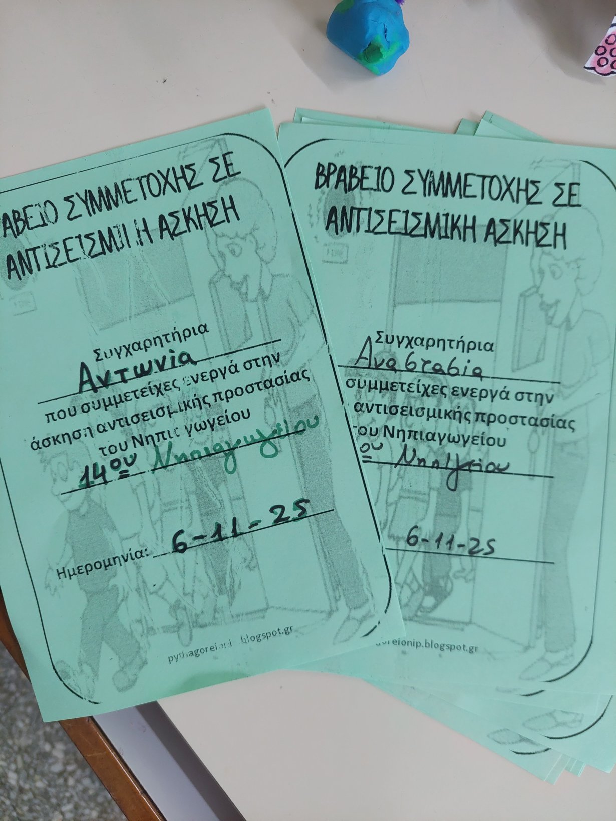 ΑΦΟΥ ΠΡΩΤΑ ΕΝΗΜΕΡΩΘΗΚΑΝ ΟΙ ΜΑΘΗΤΕΣ-ΤΡΙΕΣ ΑΠΟ ΤΙΣ ΕΚΠΑΙΔΕΥΤΙΚΟΥΣ ΓΙΑ ΤΟΝ ΣΕΙΣΜΟ,ΤΟ ΦΑΙΝΟΜΕΝΟ ΚΑΙ ΤΑ ΜΕΤΡΑ ΠΡΟΣΤΑΣΙΑΣ,ΑΚΟΛΟΥΘΗΣΕ ΑΣΚΗΣΗ ΕΤΟΙΜΟΤΗΤΑΣ ΓΙΑ ΣΕΙΣΜΙΚΟ ΚΙΝΔΥΝΟ ΚΑΙ ΦΥΣΙΚΕΣ ΚΑΤΑΣΤΡΟΦΕΣ ΜΕ ΣΥΜΜΕΤΕΧΟΝΤΕΣ ΤΙΣ ΕΚΠΑΙΔΕΥΤΙΚΟΥΣ ΚΑΙ ΤΟΥΣ ΜΑΘΗΤΕΣ-ΤΡΙΕΣ,ΚΑΙ ΣΥΜΦΩΝΑ ΜΕ ΤΑ ΣΧΕΔΙΑ ΜΝΗΜΟΝΙΩΝ ΠΟΥ ΕΧΟΥΝ ΣΥΝΤΑΧΘΕΙ,ΚΑΙ ΥΠΑΡΧΟΥΝ ΣΤΟ ΑΡΧΕΙΟ ΤΟΥ ΣΧΟΛΕΙΟΥ.