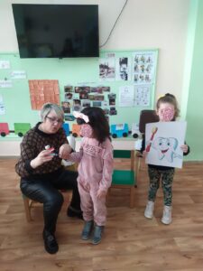 – Ζωγραφιές από το περιεχόμενο των παραμυθιών 6ο & 7ο Εργαστήριο Τίτλος: Με την “ΤΟΜΥ” μαθαίνω, τα δοντάκια μου πως να πλένω! Στόχος: Με την επίσκεψη, ειδικών επιστημόνων της ΤΟΜΥ Αγρινίου, τα παιδιά μέσα από την επίδειξη εποπτικού υλικού, τη βιωματική μάθηση και το παιχνίδι, μαθαίνουν για τη στοματική υγιεινή. Ενδεικτικές δραστηριότητες: Πως βουρτσίζω σωστά τα δόντια!