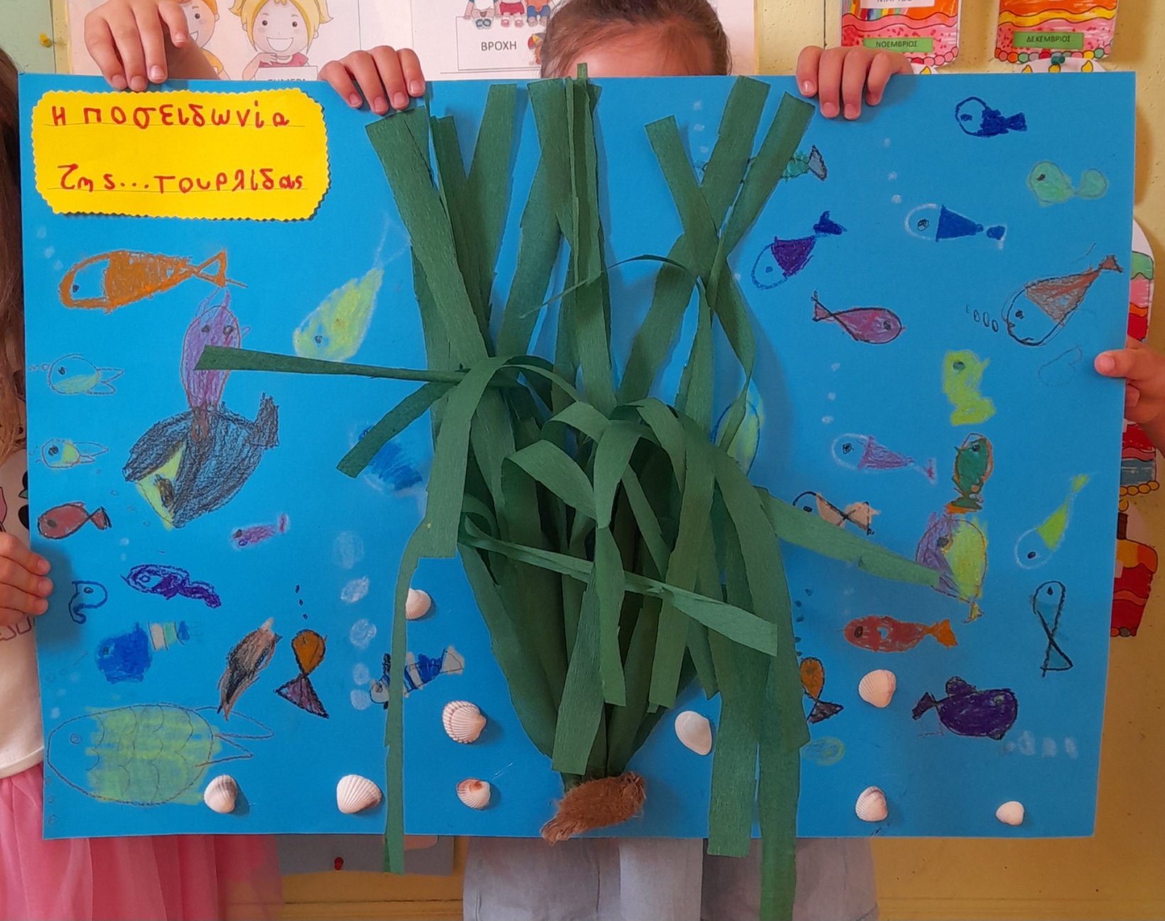 Τα παιδιά αναζητώντας τους καρπούς της Ποσειδωνίας, στην παραλία της Τουρλίδας, ανακάλυψαν και  μετέφεραν  στο σχολείο “θησαυρούς”. Κοχύλια και μπάλες του Ποσειδώνα.