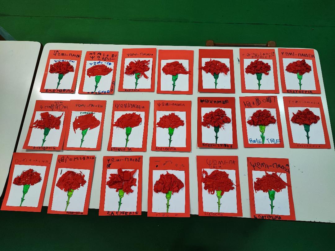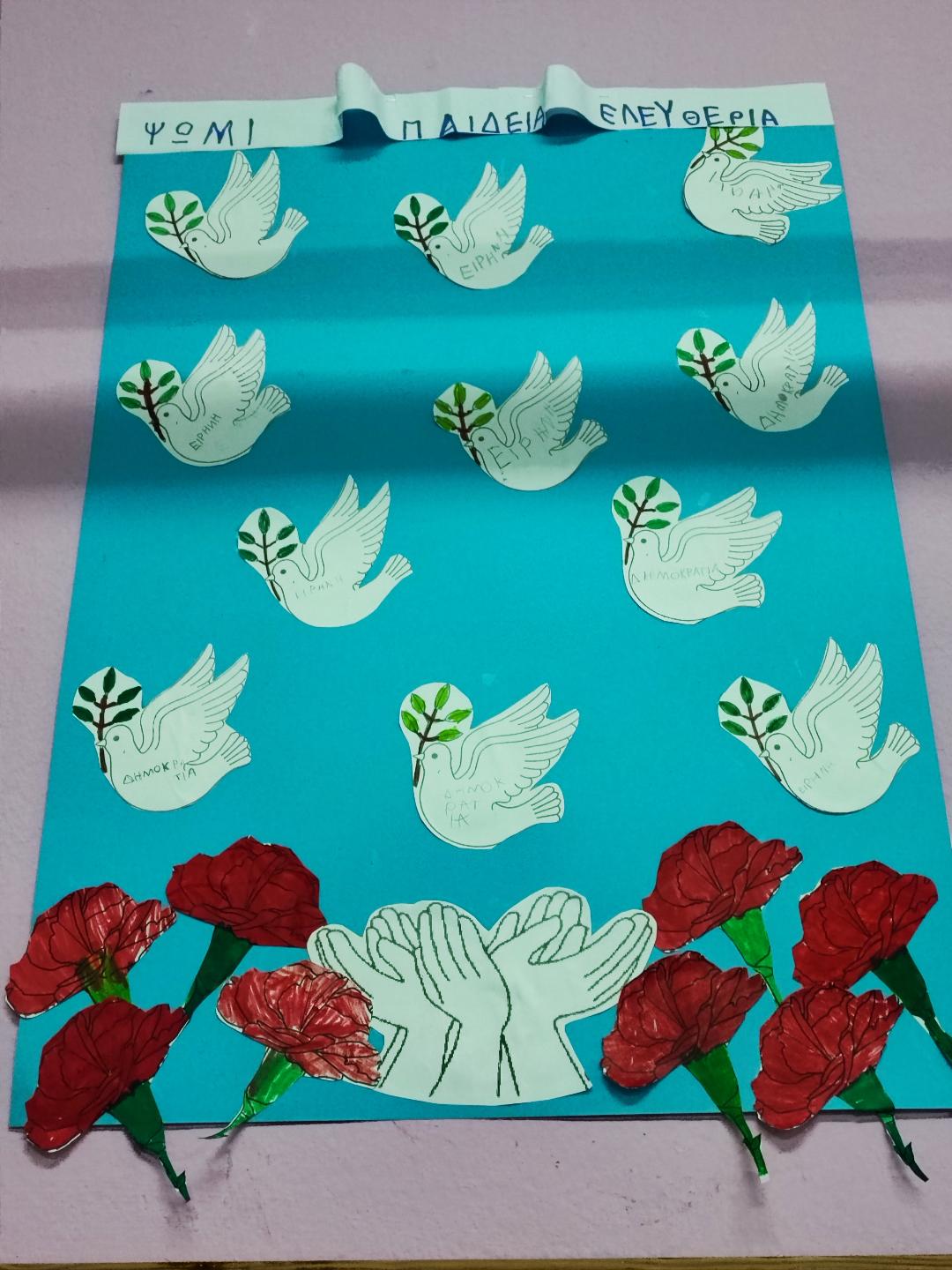 Η επέτειος του Πολυτεχνείου αποτελεί μια θαυμάσια ευκαιρία να μιλήσουμε στο Νηπιαγωγείο για την αξία της Δημοκρατίας και τους αγώνες για την κατάκτησή της. Επειδή η προσέγγιση των γεγονότων απαιτεί ειδικό χειρισμό εκμεταλλευτήκαμε το πολυποίκιλλο υλικό όπως τραγούδια και βιβλία. Έτσι αφού διαβάσαμε την «Κυρά Δημοκρατία» (Αρμενιάκου Κωνσταντίνα), τραγουδήσαμε, δημιουργήσαμε τα περιστέρια για να στείλουμε το μήνυμα της ειρήνης και καταθέσαμε το δικό μας γαρύφαλλο στη μνήμη όλων εκείνων που πάσχισαν για τα τόσο πολύτιμα αγαθά!