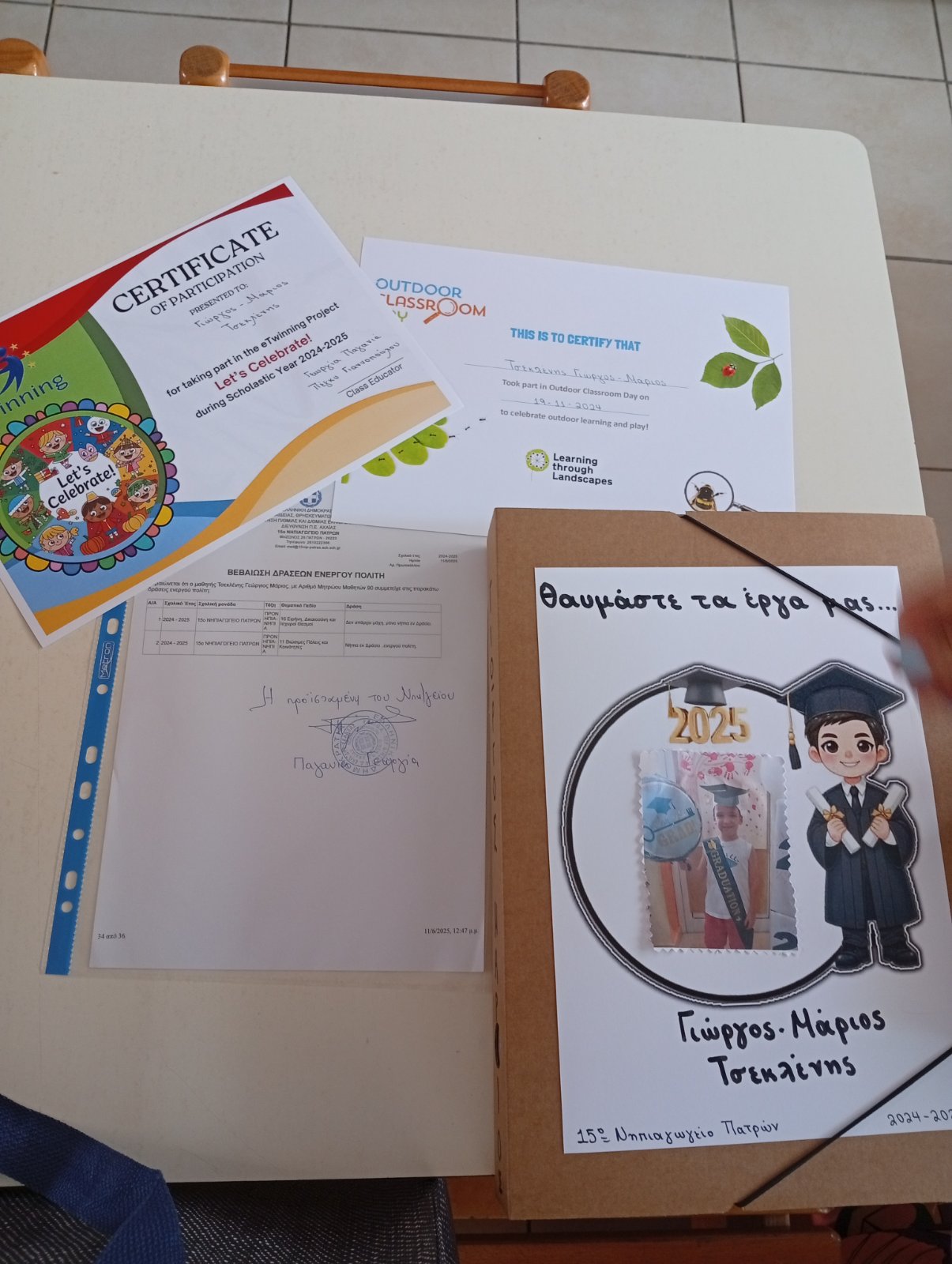 Κάρτες,αναμνηστικά,φάκελοι,δώρα,κατασκευές……και έπαινοι με βραβεία και καπελάκια αποφοίτησης.