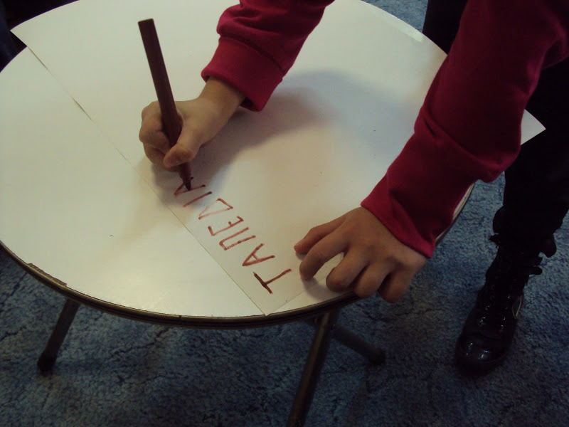 Σήμερα μετά από τις συζητήσεις τα παιδιά γράφανε στον πίνακα τις λέξεις που είχαμε στον πίνακα.