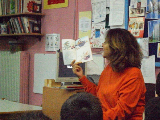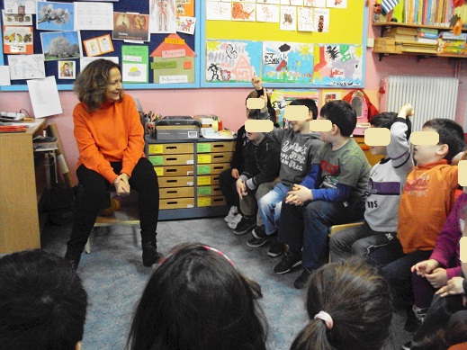 Η συγγραφέας Ρένα Ρώσση-Ζαΐρη στο νηπιαγωγείο (κατά τη διάρκεια)