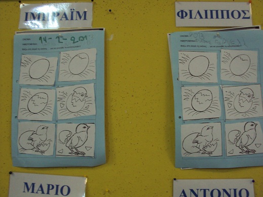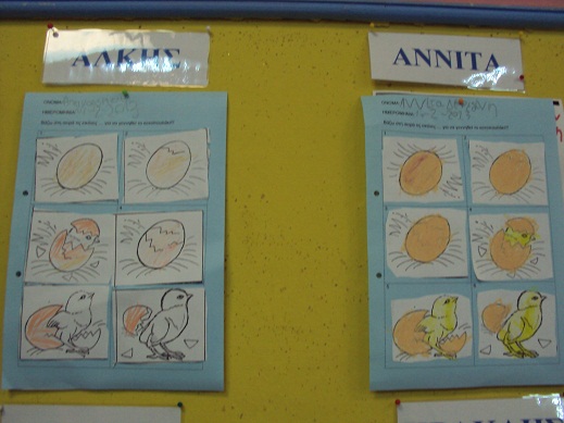 Αφού ασχολούμαστε αυτές τις μέρες με την εκκόλαψη των αυγών, κάναμε την επέκτασή μας και στα μαθηματικά όπως και στη γλώσσα.