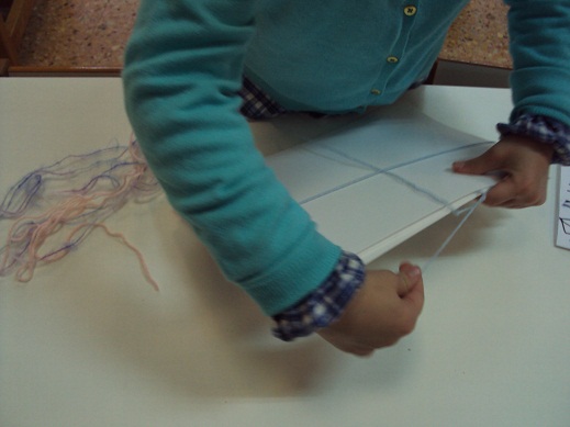 Με την κυρία Κασσιανή έπλεξαν σε κανσόν μαλλί σε διάφορα σχέδια. …και μια μέρα με δυνατή βροχή έφτιαξαν τις δικές τους βροχές και σύννεφα με διάφορα υλικά