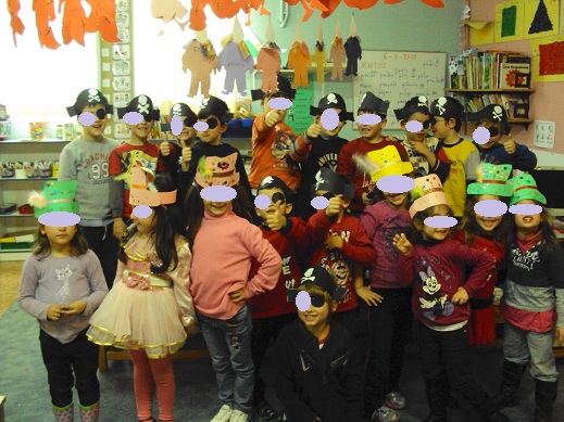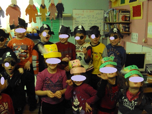 Μετά φτιάξαμε καπέλο πειρατή για τα αγόρια και “κυρίας” για τα κορίτσια για να συνεχίσουμε το γλέντι στο σπίτι μας.