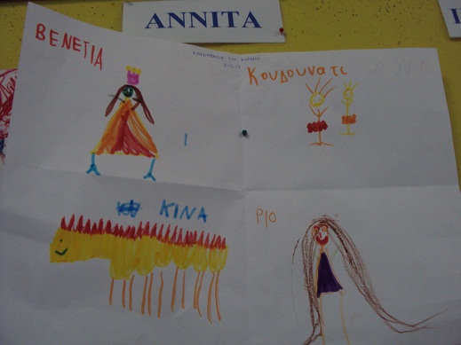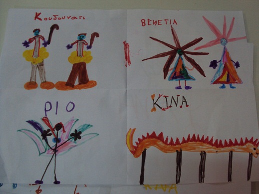 Σήμερα τα παιδιά το πρωί με την κ. Κασσιανή, μίλησαν για το καρναβάλι και πώς το γιορτάζουν σε διάφορα μέρη. Είδαν βίντεο με κουδουνάτους, με το καρναβάλι στη Βενετία, στο Ρίο και στην Κίνα. Εντόπισαν αυτά τα μέρη στην υδρόγειο σφαίρα και μετά ζωγράφισαν σε Α3, χωρισμένο στα τέσσερα, κάτι απ’ το κάθε καρναβάλι.